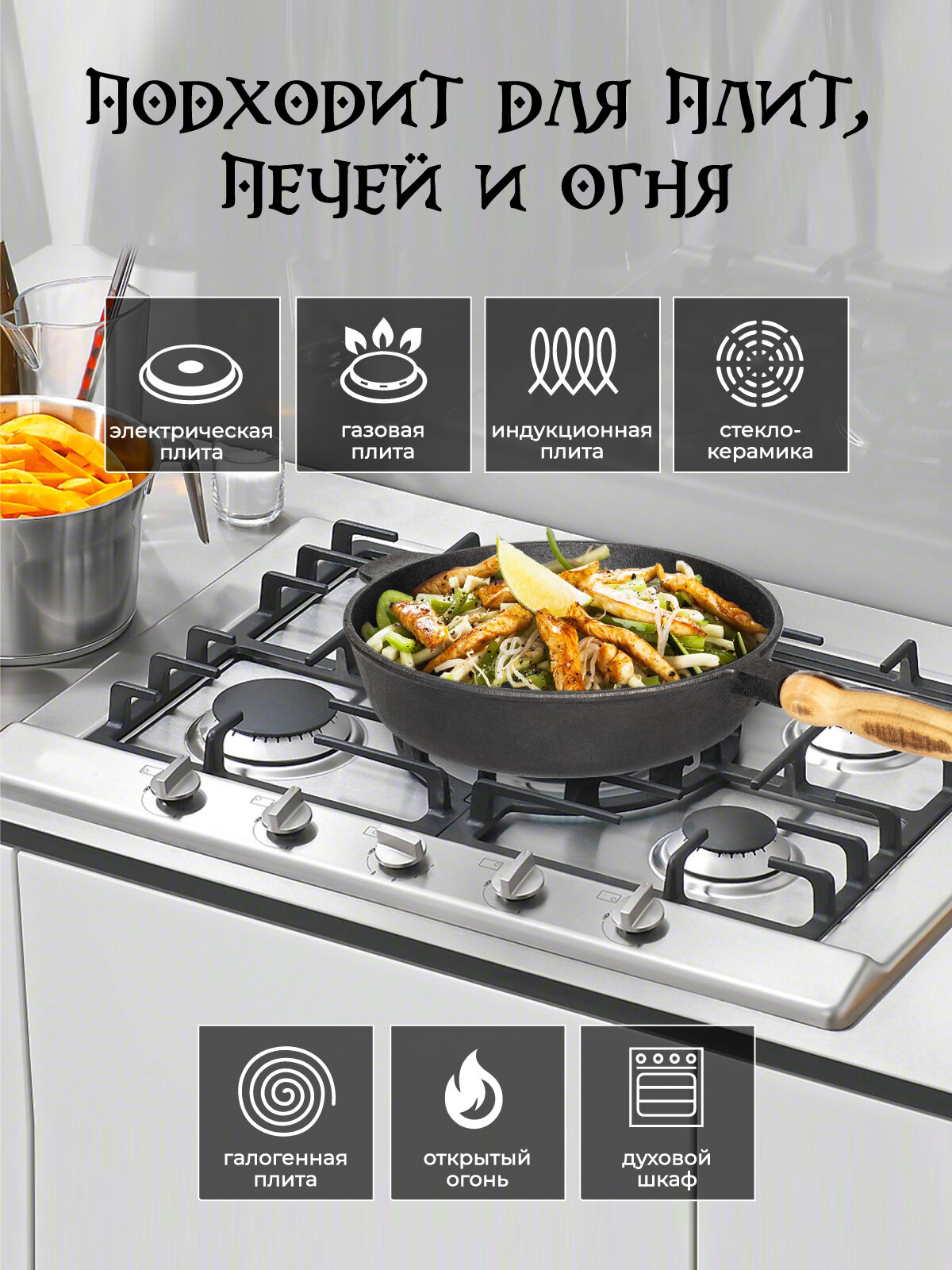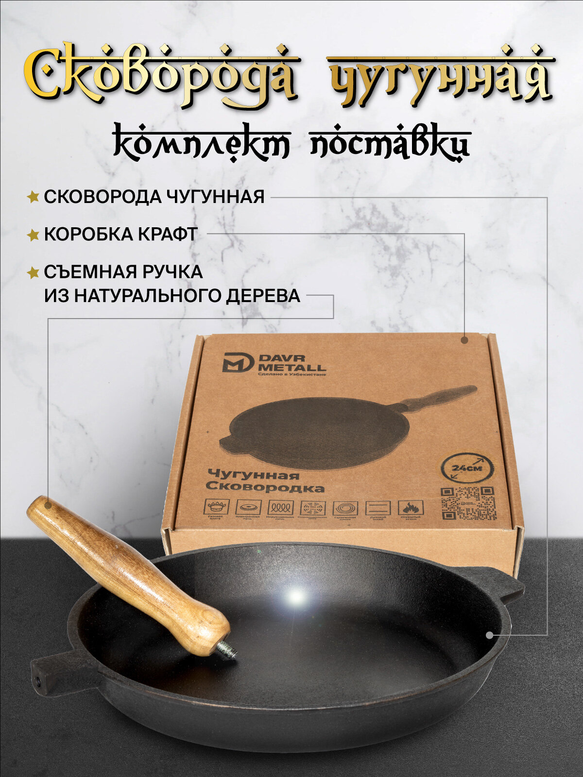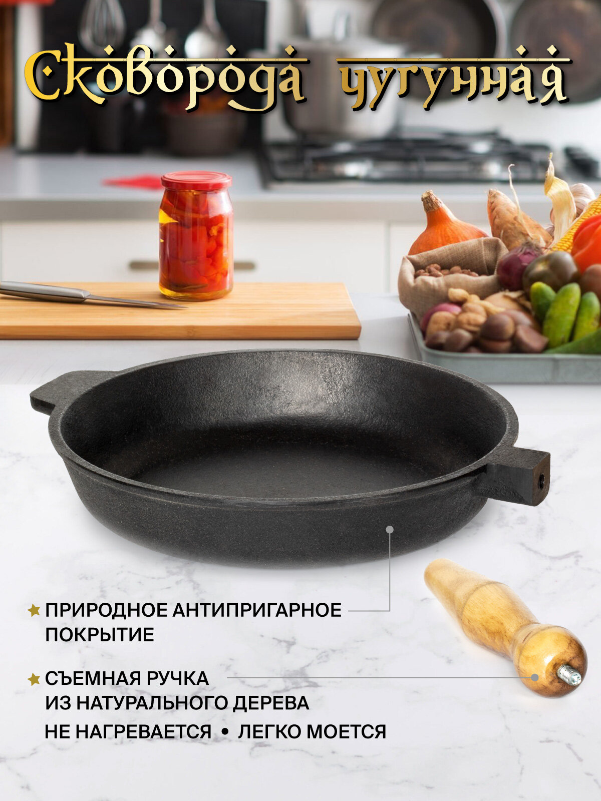 Сковорода чугунная 24 см, высота 4 см, со съемной ручкой интересное:
