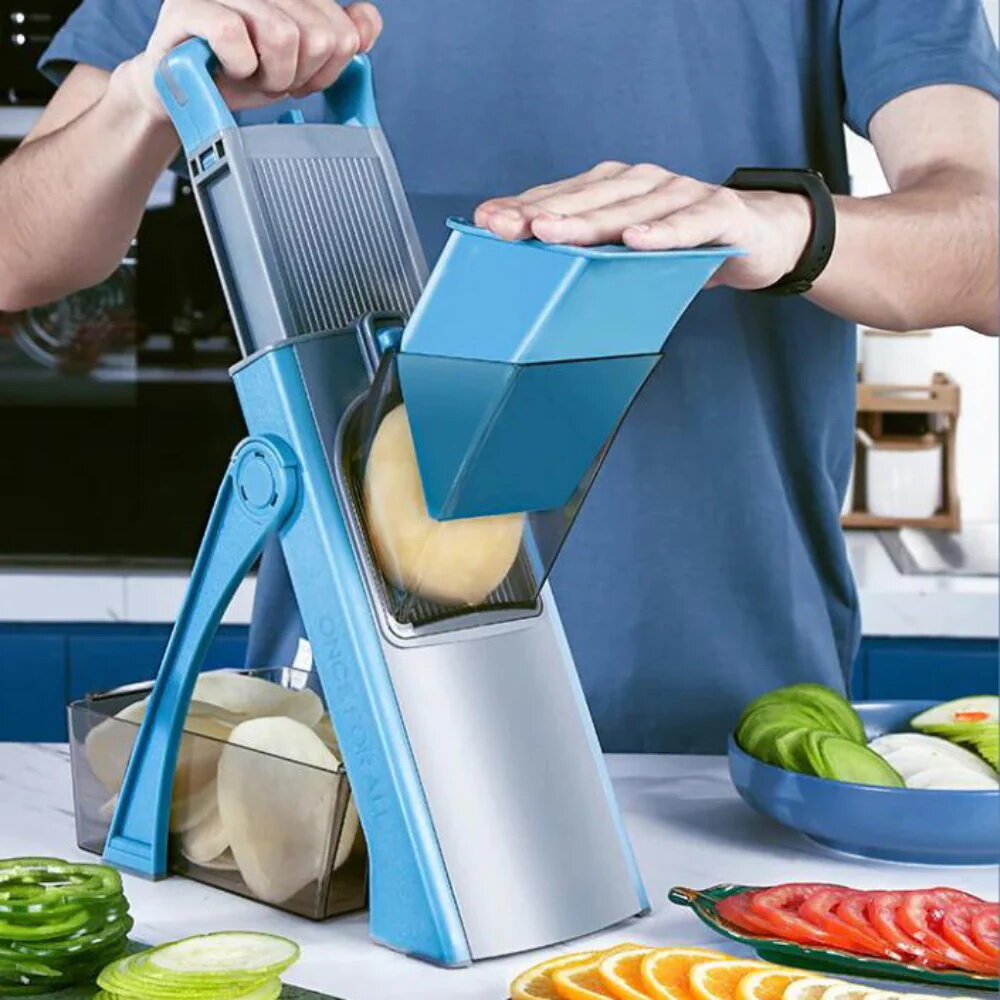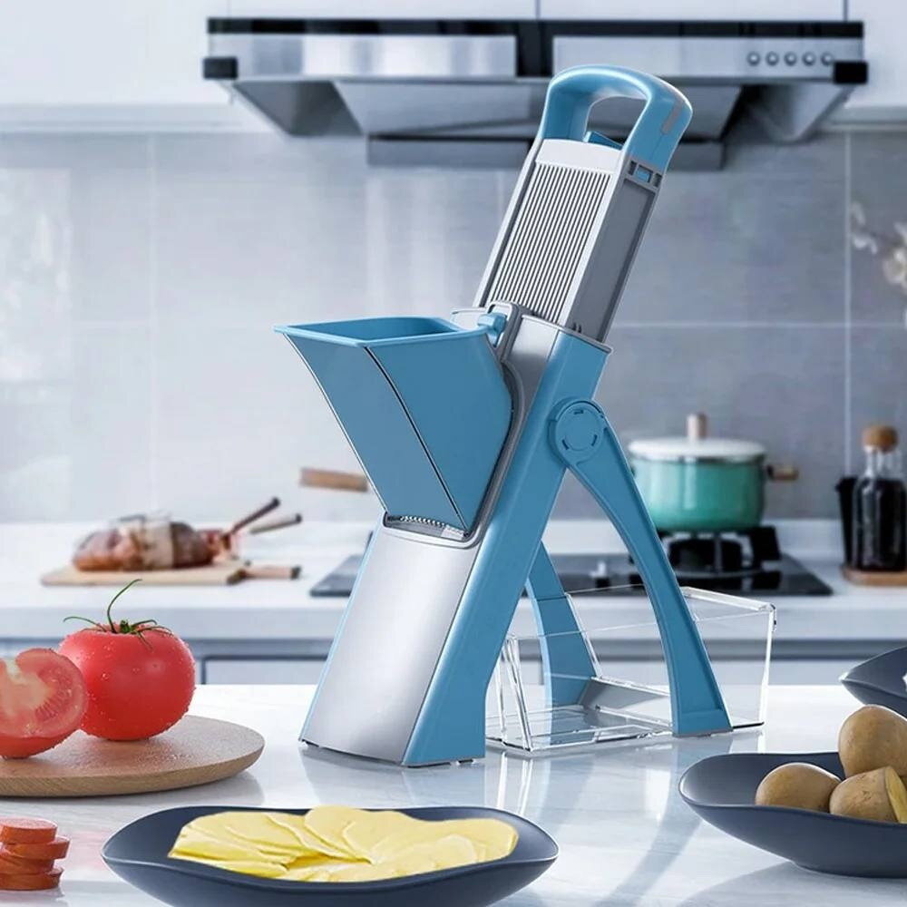 Купить Овощерезка ручная для овощей и фруктов, терка, измельчитель, с контейнером, ручной кухонный комбайн, синий