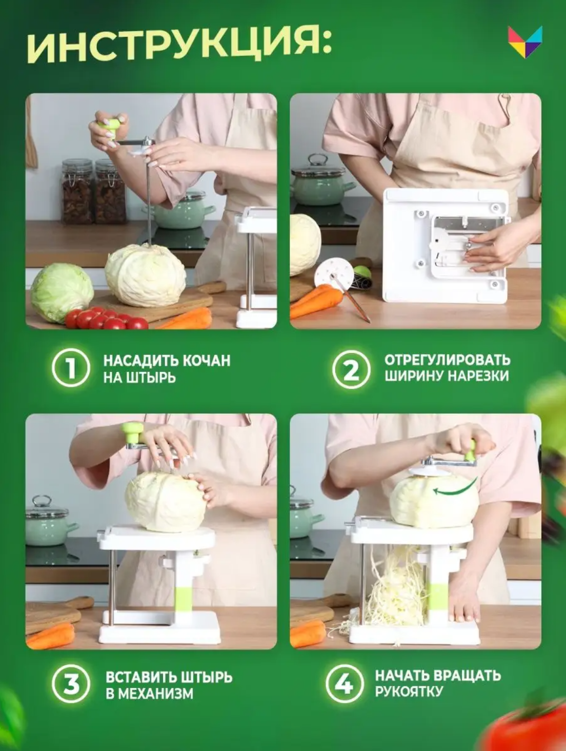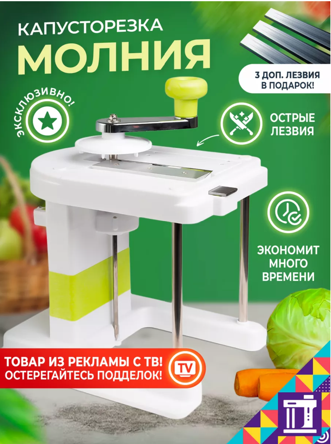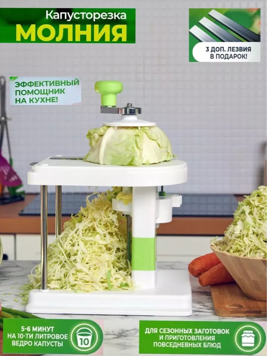 Купить Механическая капусторезка молния, ручная капусторезка измельчитель с регулировкой ширины нарезки (3 дополнительных лезвия в подарок)