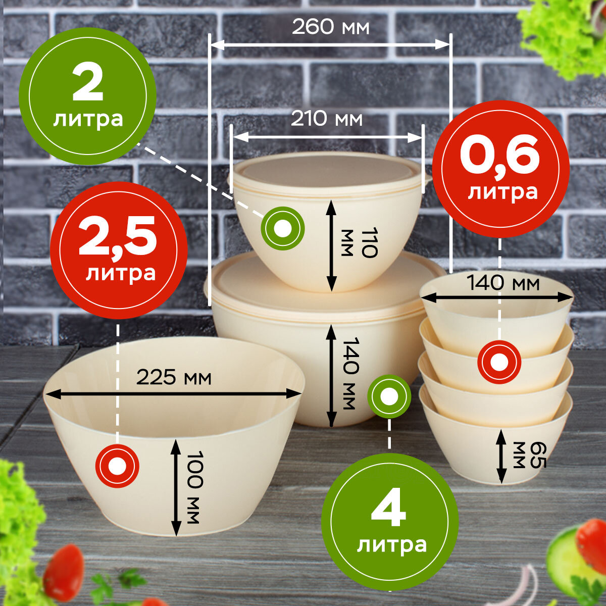 Набор мисок салатников для кухни Ангора, цвет кремовый интересное: