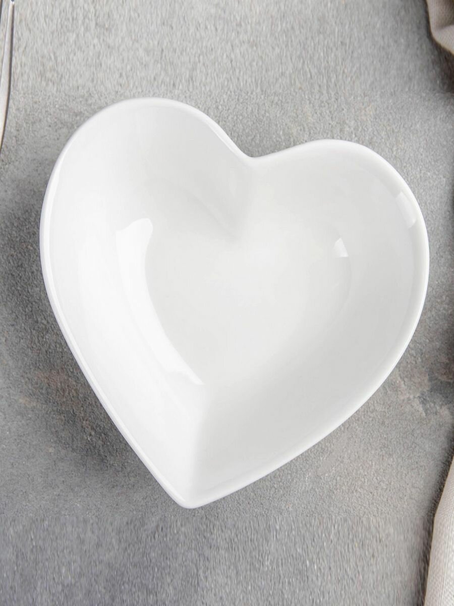 Салатник керамический Доляна «Сердце», 130 мл, цвет белый