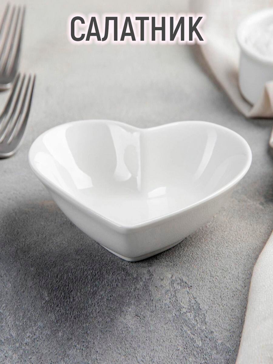 Салатник Доляна «Сердце»,12×11,5 см, цвет белый