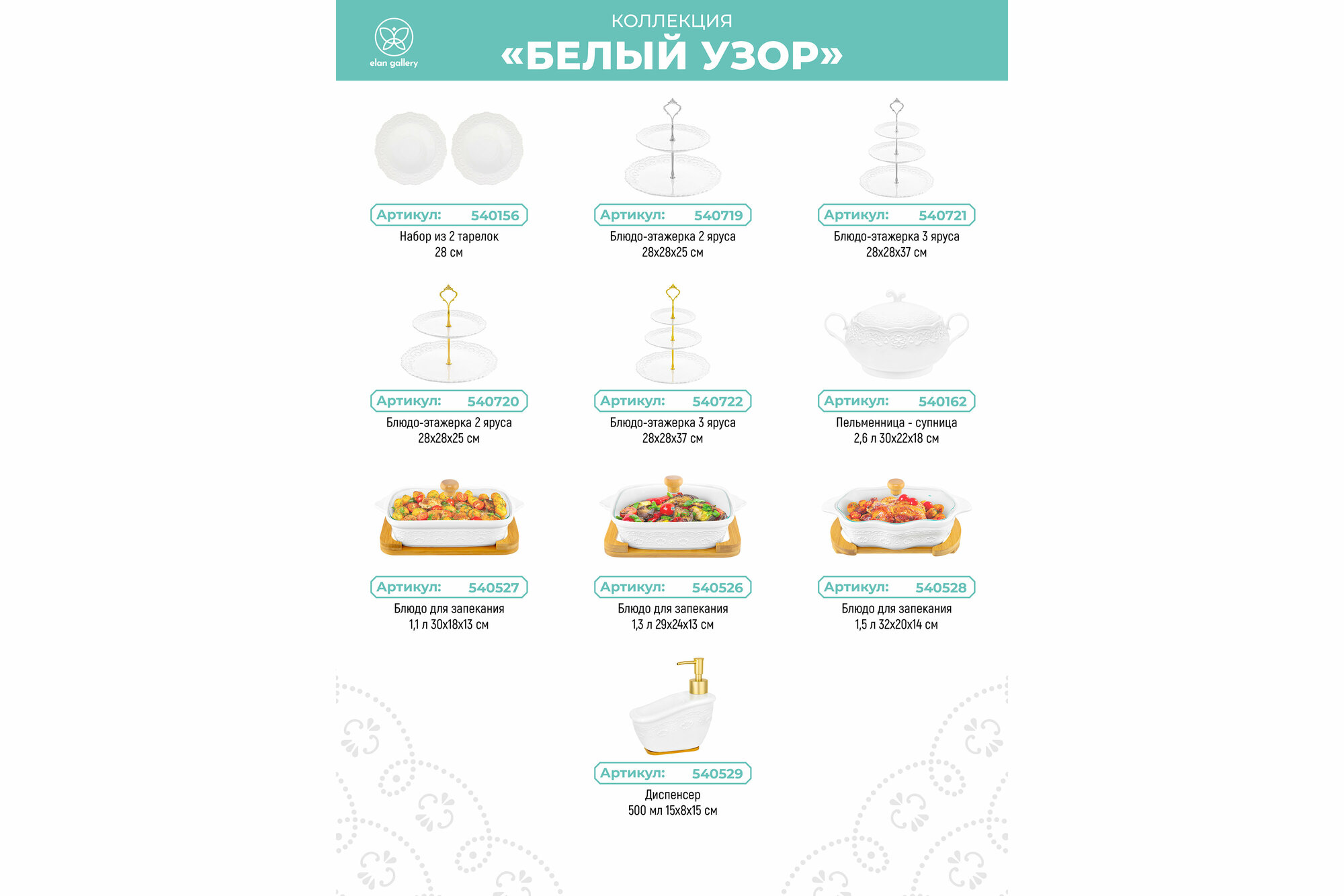 Блюдо для запекания 1,5 л 32х20х14 см Elan Gallery Белый узор, ажурное со стеклянной крышкой, на деревянной подставке интересное: