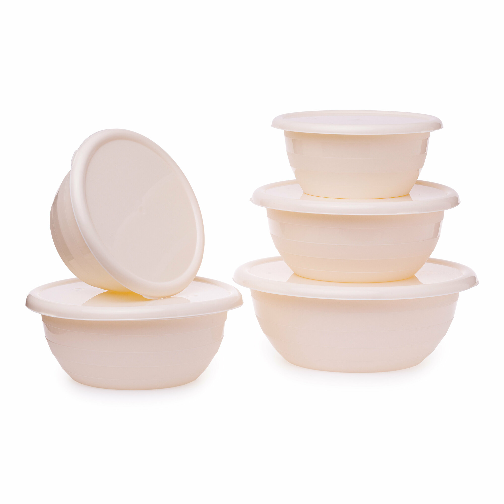 Купить Набор салатников SparkPlast с крышками, бежевый, 5 штук