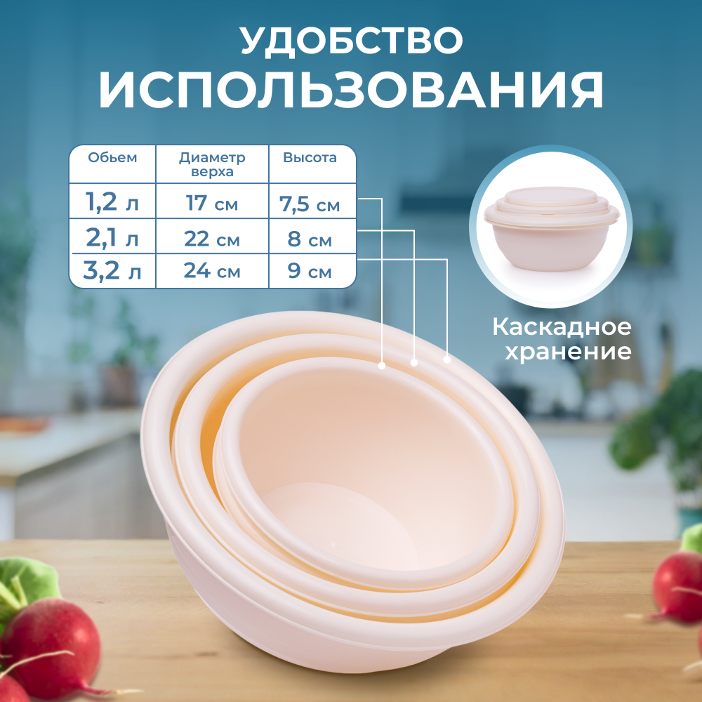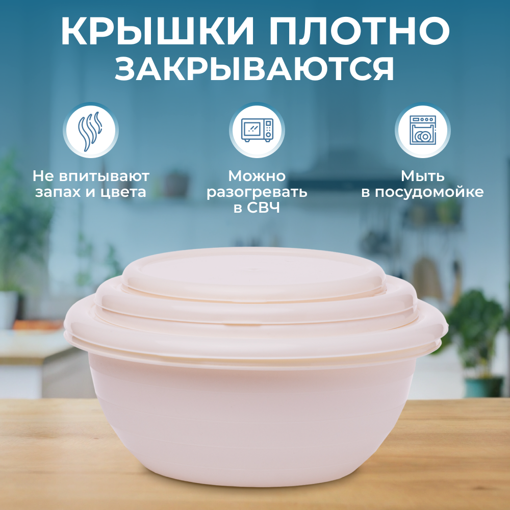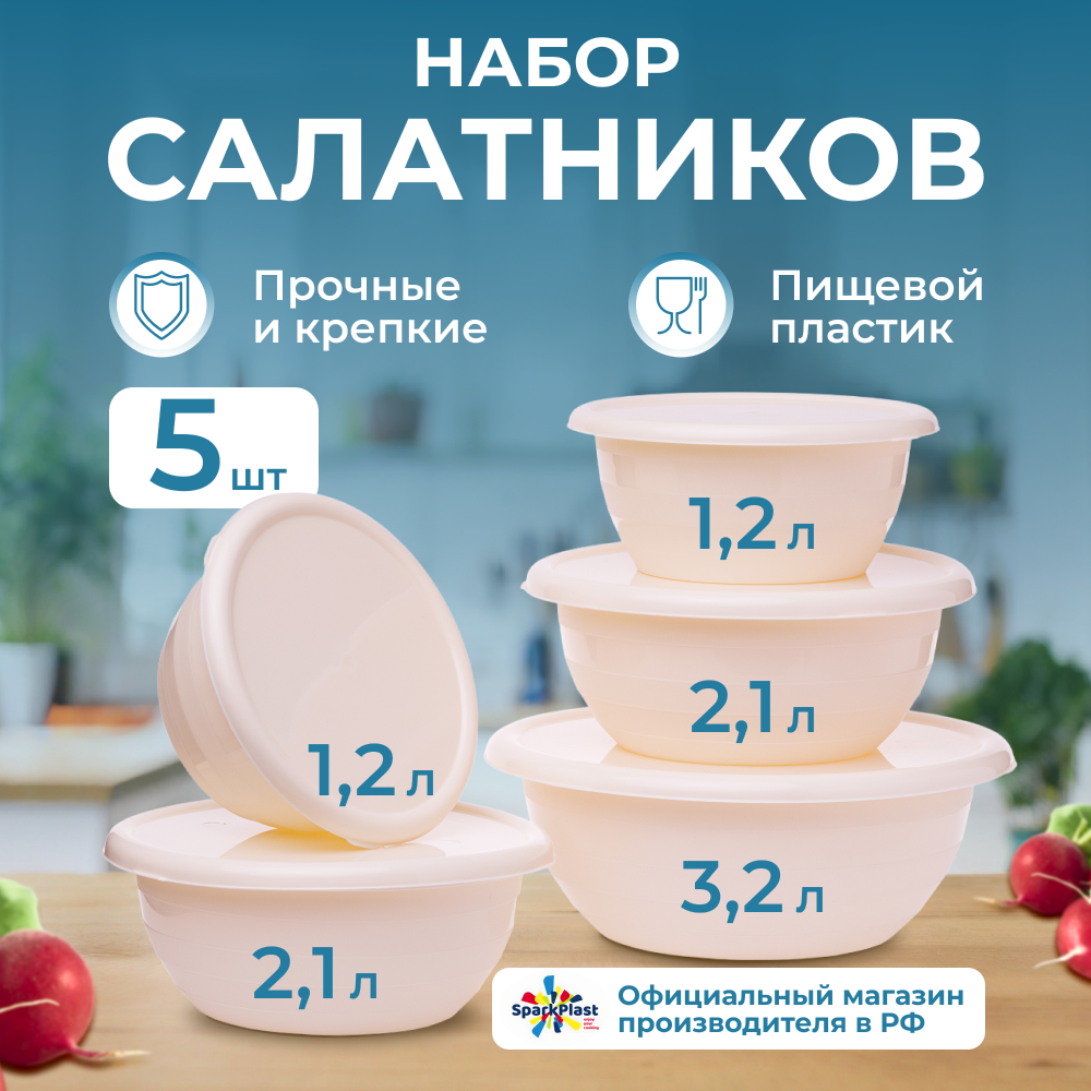 Набор салатников SparkPlast с крышками, бежевый, 5 штук интересное: