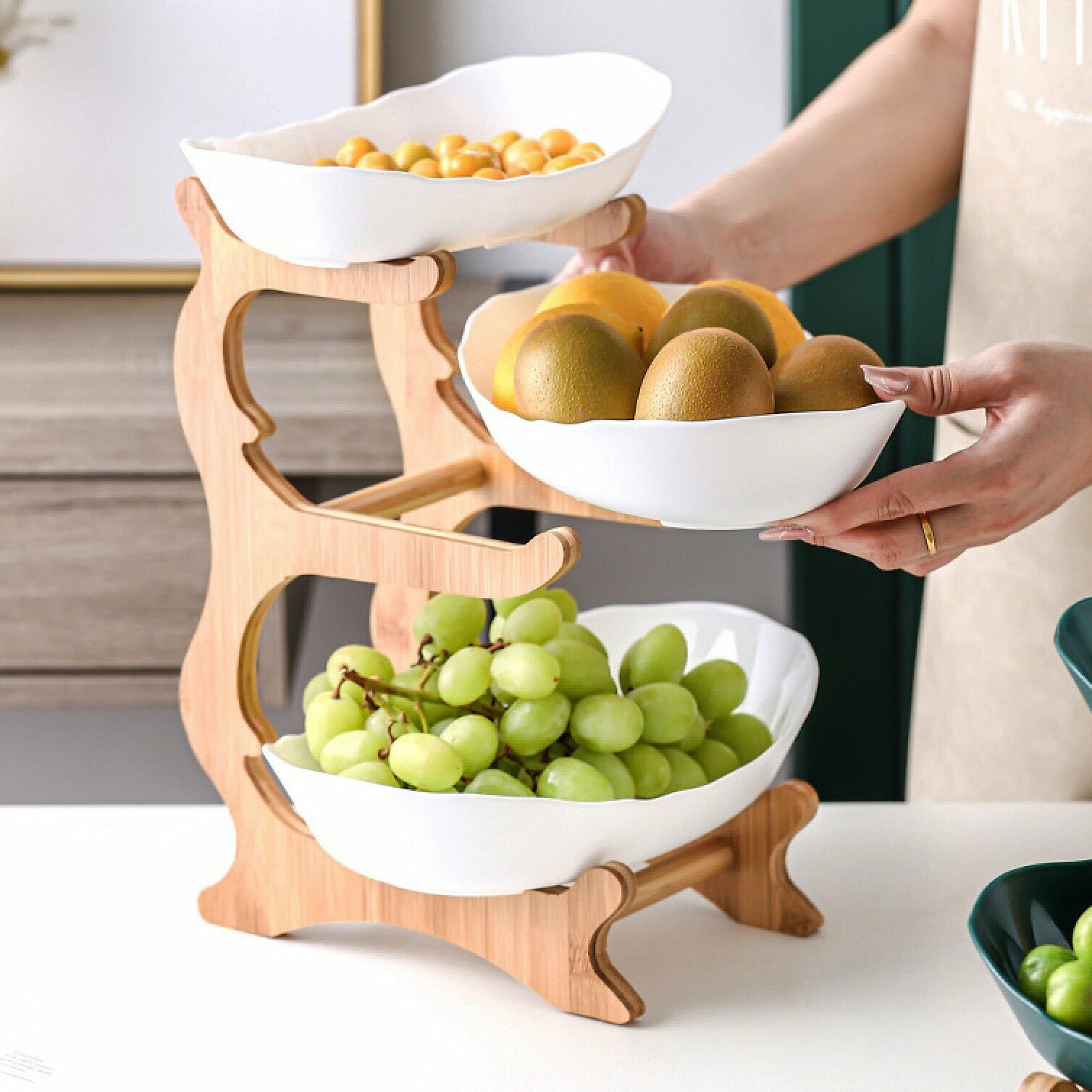 Фруктовница менажница трехъярусная / 3х ярусная ваза для фруктов / подставка для пирожных конфет трехъярусная интересное: