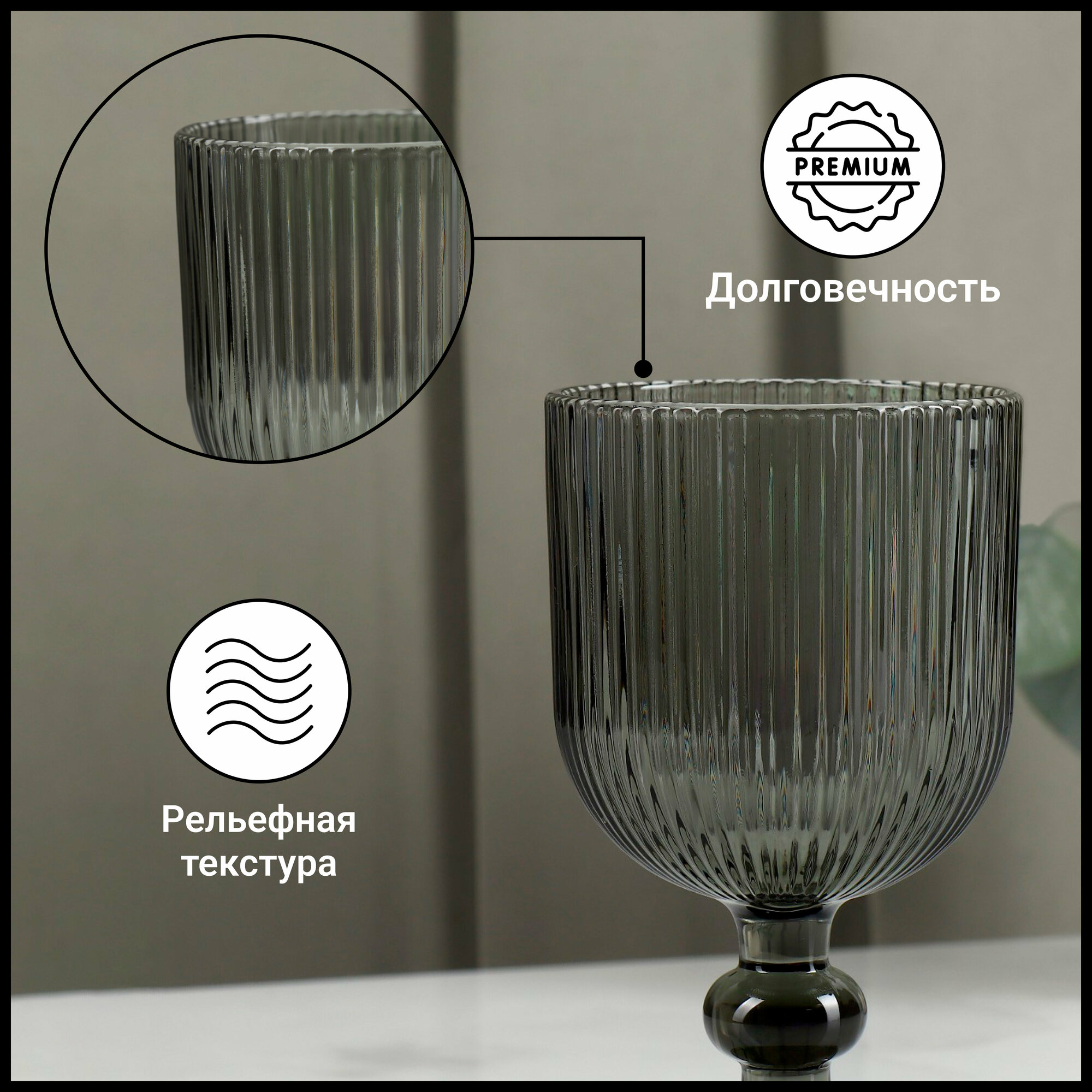 Набор бокалов стеклянных для вина Magistro «Дарио», 500 мл, 10×25 см, 2 шт, цвет графит
