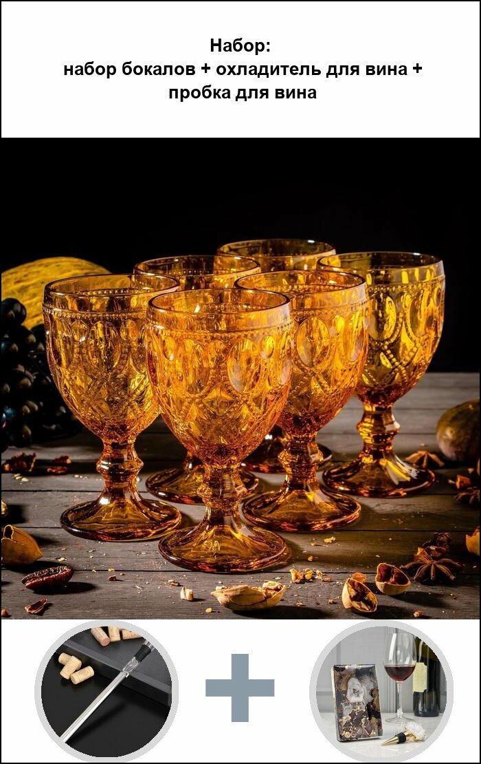 Набор бокалов для вина Magistro "Вилеро", 280 мл, 8x16 см, 2 шт, цвет жёлтый, фужеры стеклянные