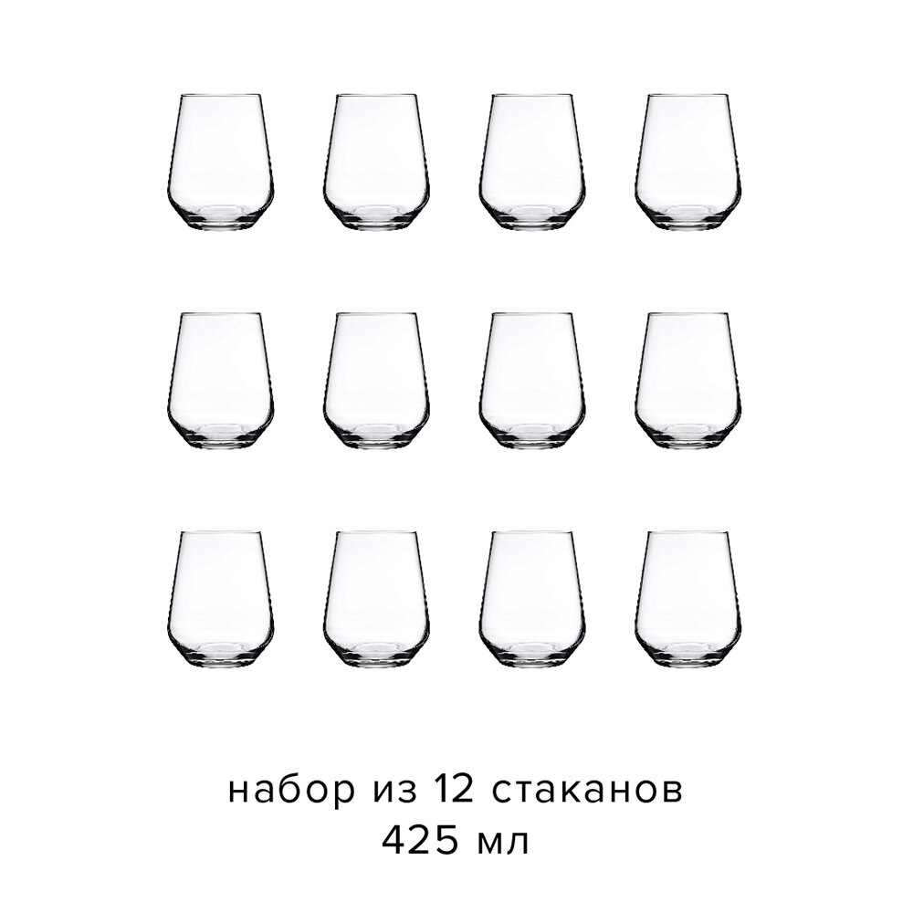 Низкие стаканы для воды, для напитков 425 мл, набор 12 шт, Pasabahce