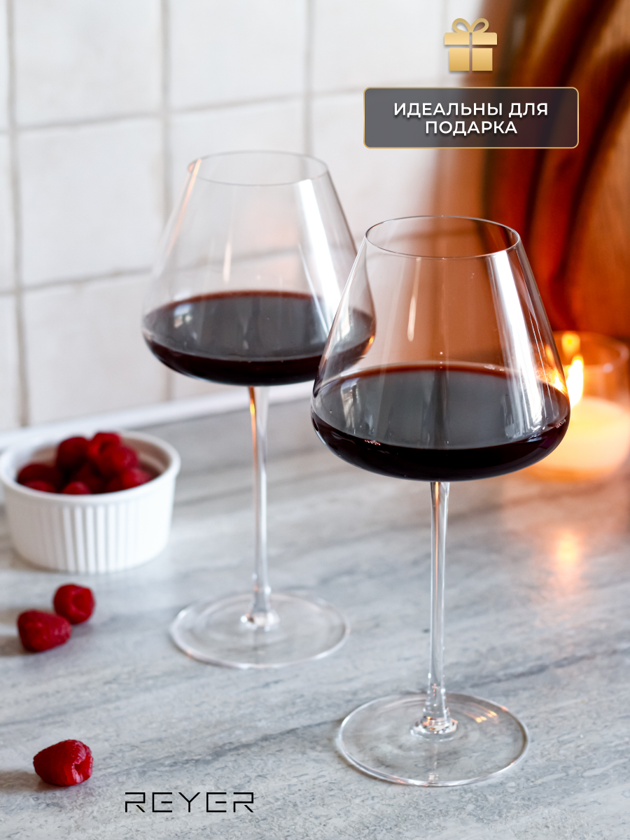 Бокалы Reyer для красного и белого вина, хрустальное стекло, ручная работа, 650 мл, 2 шт.