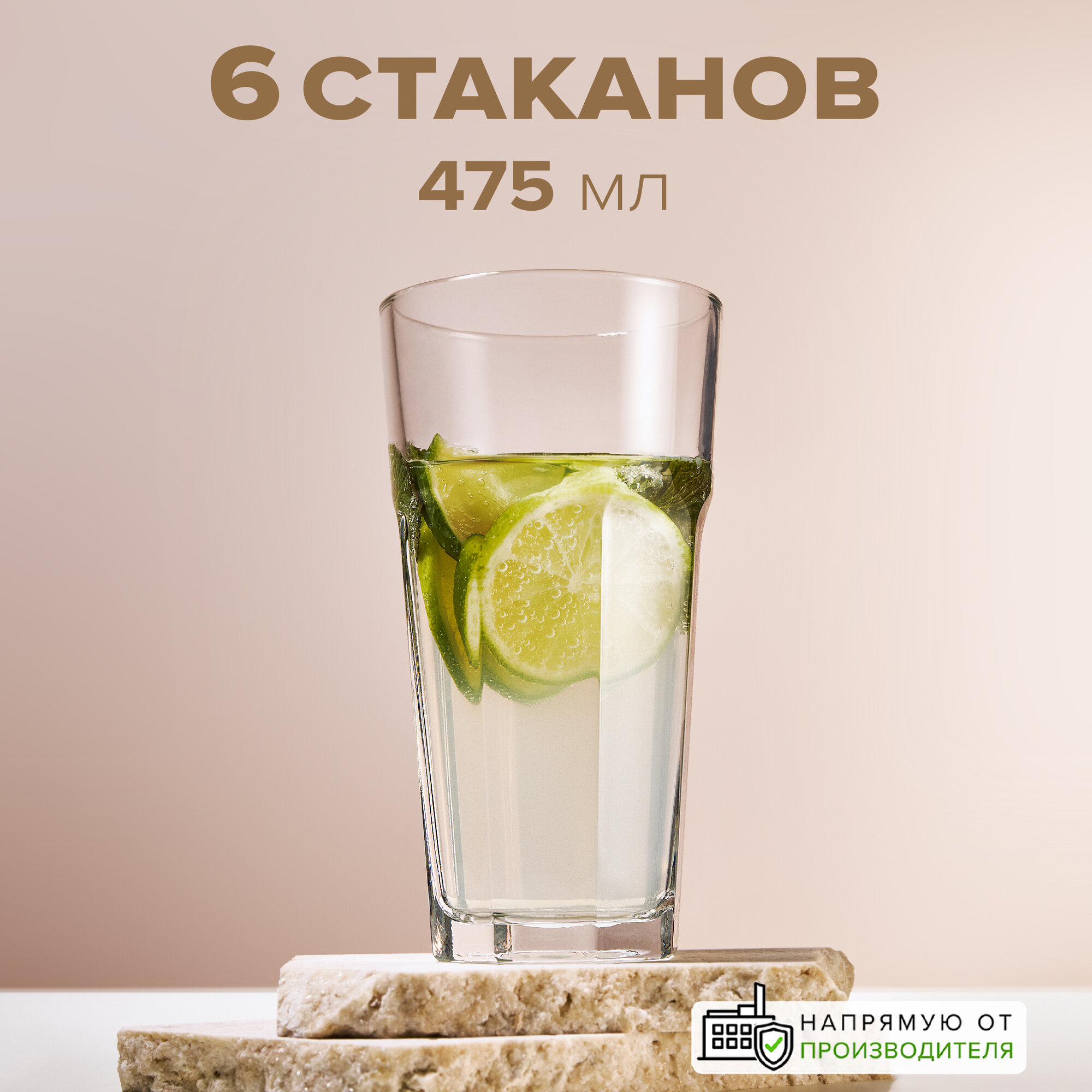 Стаканы высокие 475 мл, набор 6 шт., Pasabahce интересное: