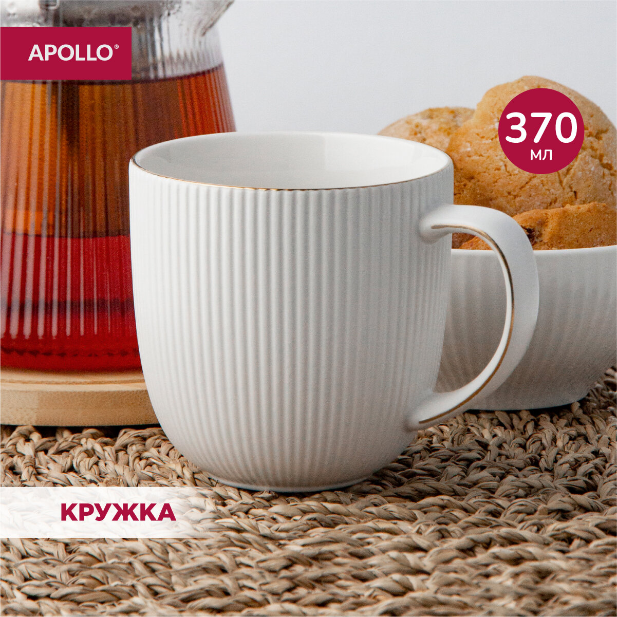 СохранитьКружка, чашка фарфоровая APOLLO "Ribb" 370 мл белая интересное: