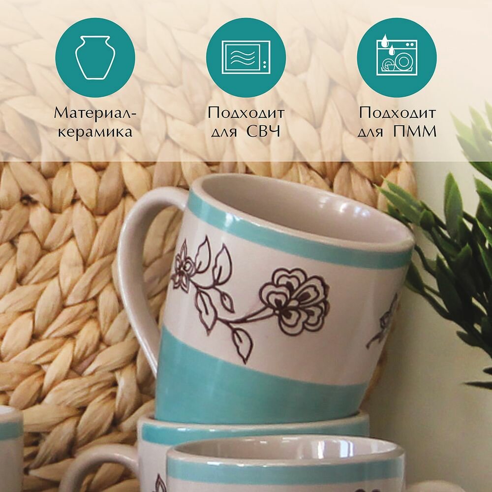 Набор кружек 12 штук 350 мл кружки керамика для чая кофе какао "Голубой ситец" интересное: