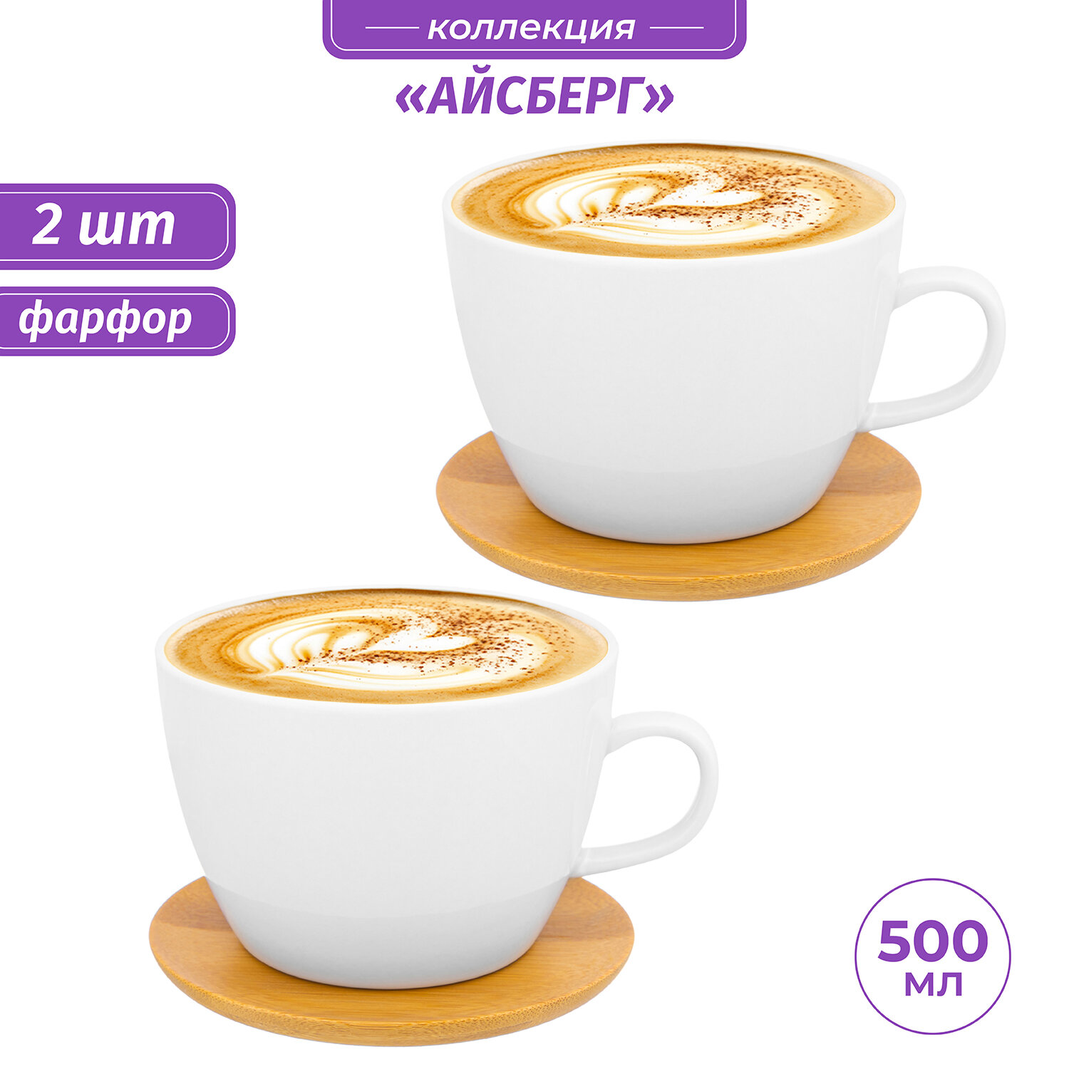 Чашка / кружка 2 шт для капучино и кофе латте Elan Gallery 500 мл "Снежная королева" + дерев. подставка, набор интересное: