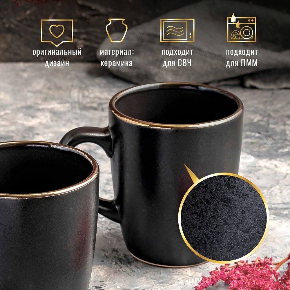 Набор кружек для чая кофе какао 400 мл 2шт Nero кружка большая керамическая черная