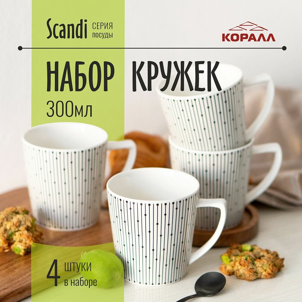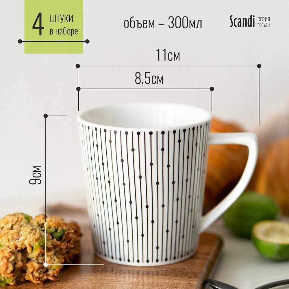 Набор кружек 300мл 4 шт кружка для чая кофе белая фарфор Scandi интересное: