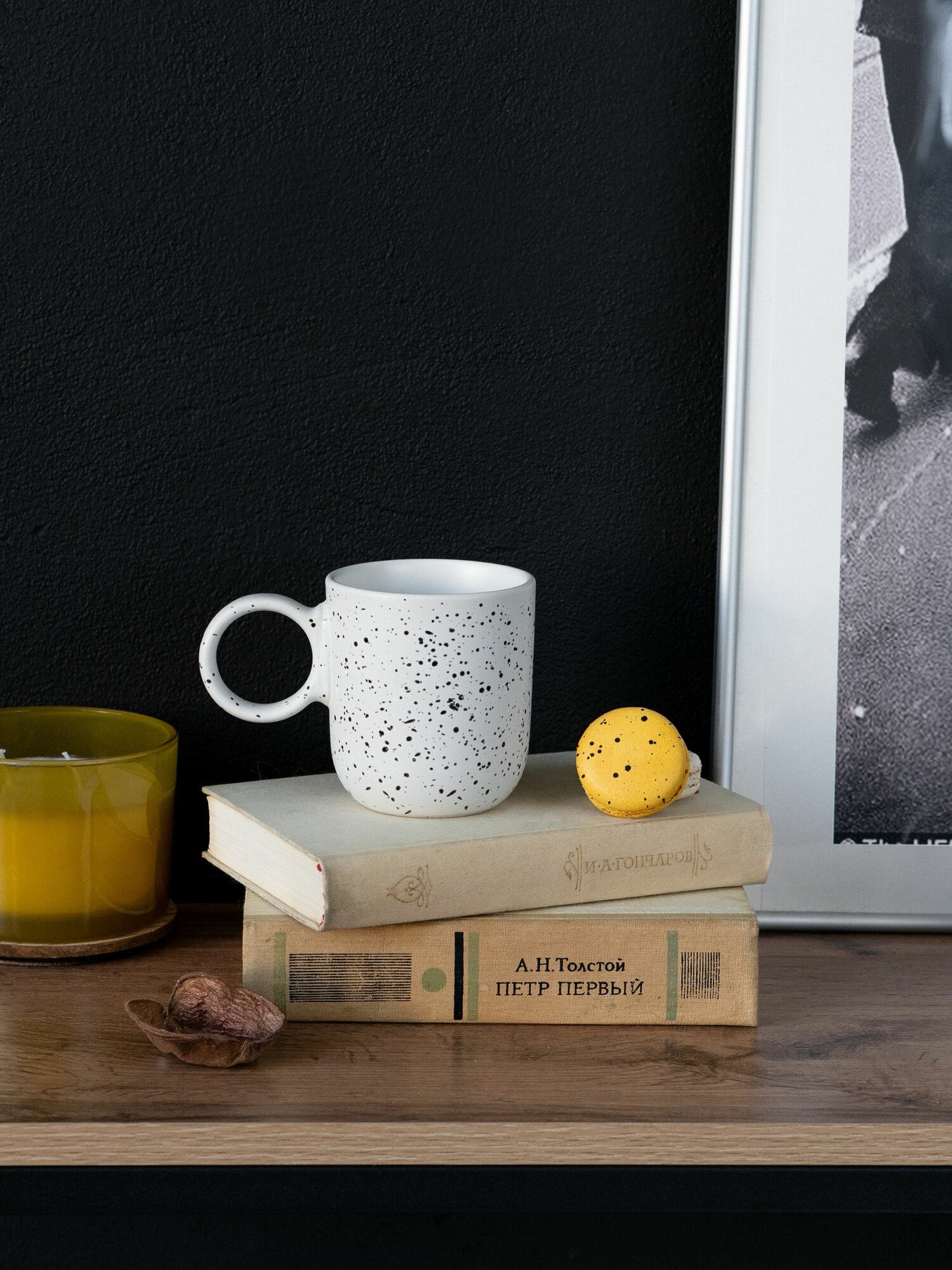 Кружка керамическая 400мл цвет белый в крапинку. Матовая кружка для чая, кофе, какао