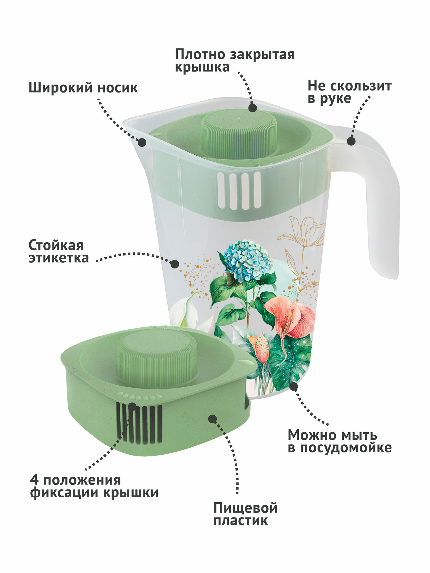 Кувшин для воды/ кувшин для сока / графин с крышкой 2 л Олива