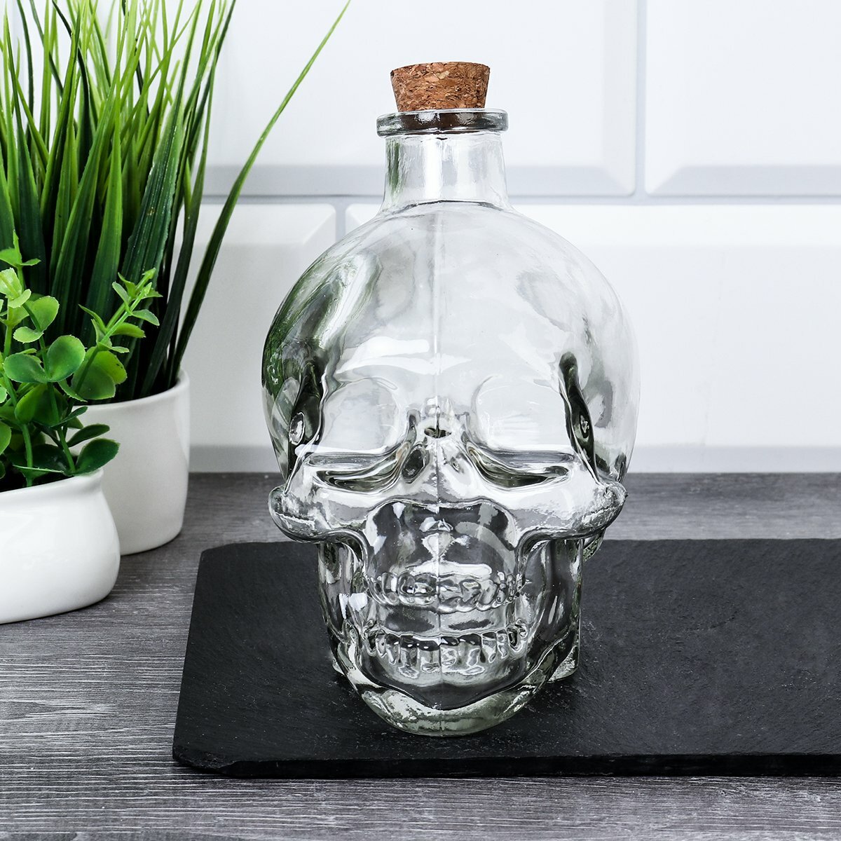 Графин штоф "Череп" 200 мл, для крепких напитков, стеклянная бутылка с пробкой