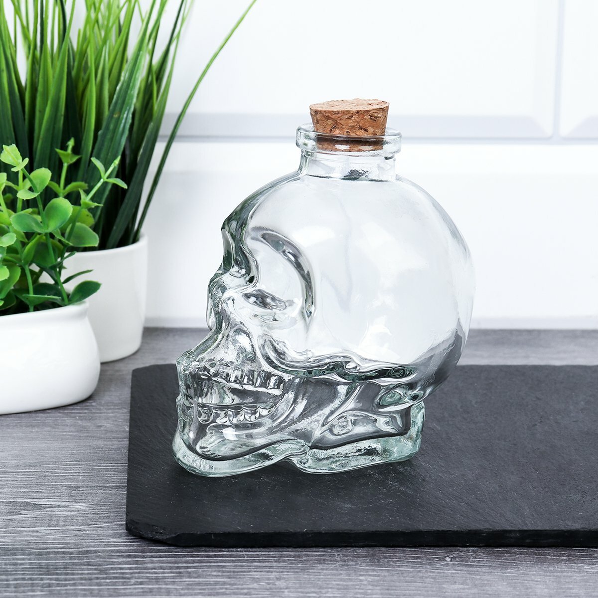 Графин штоф "Череп" 450 мл, для крепких напитков, стеклянная бутылка с пробкой