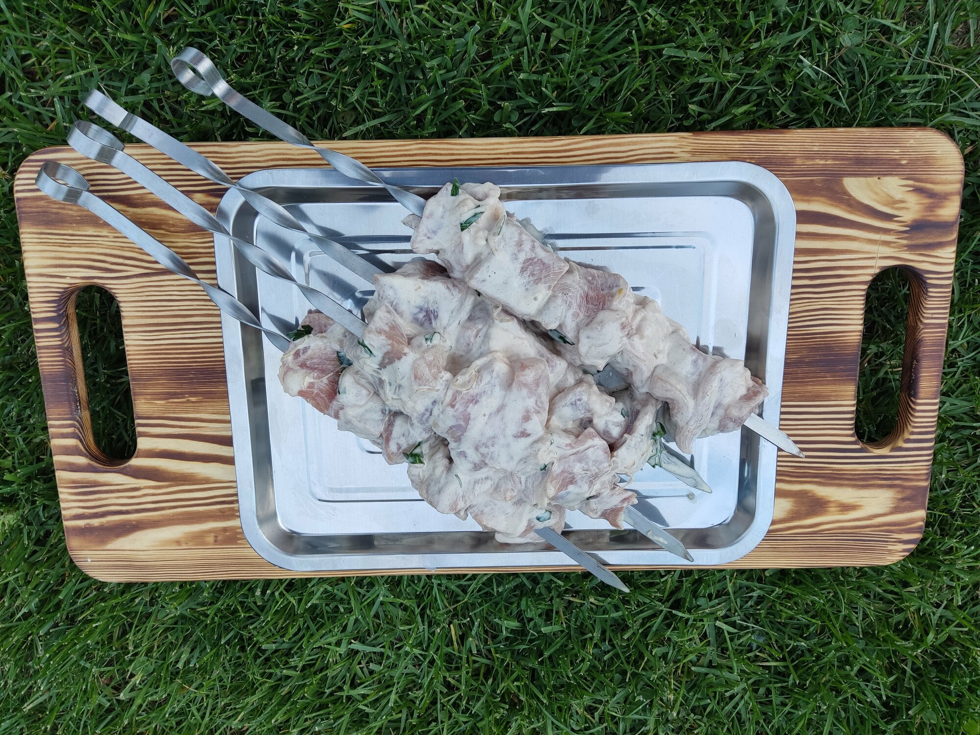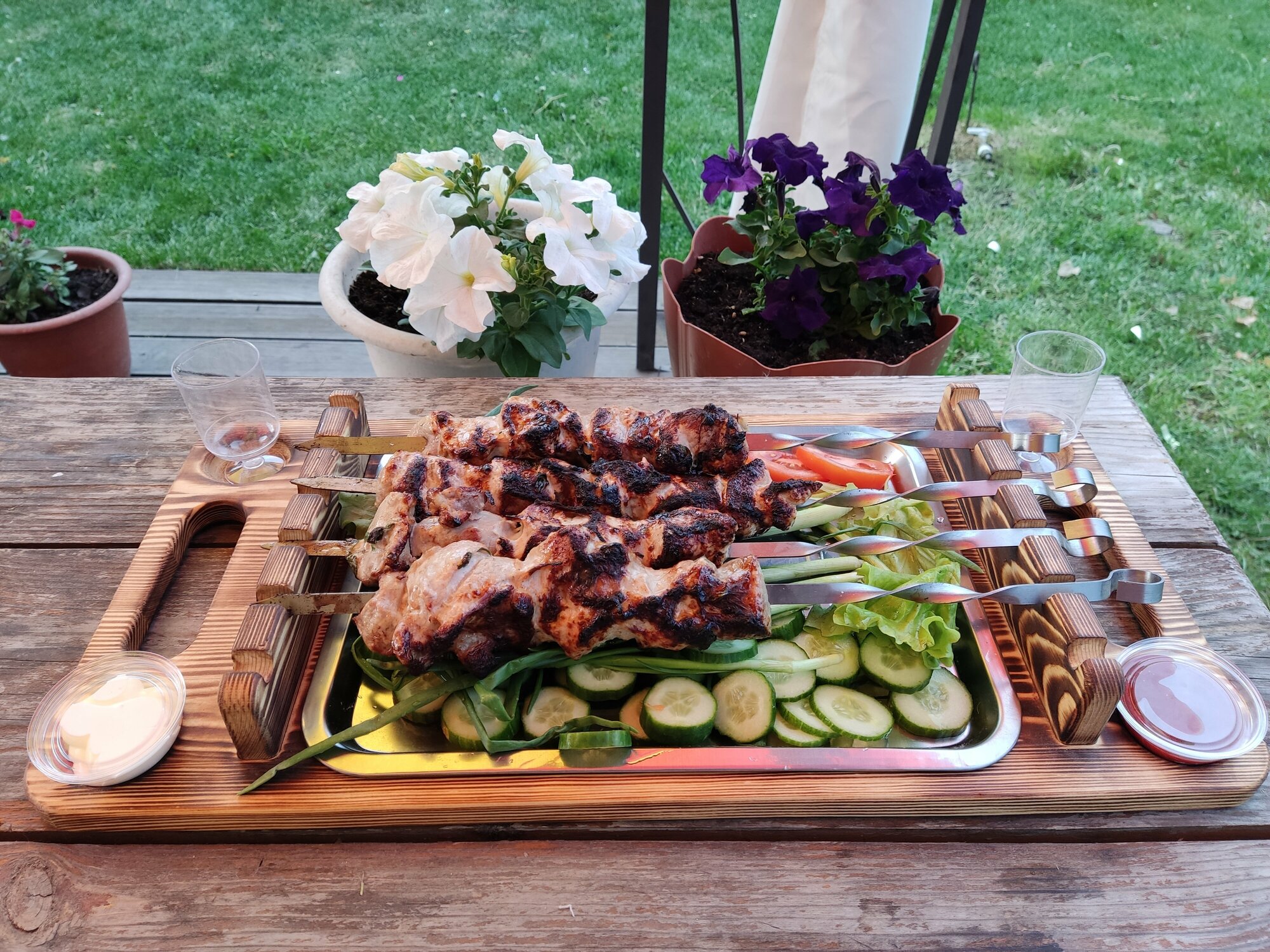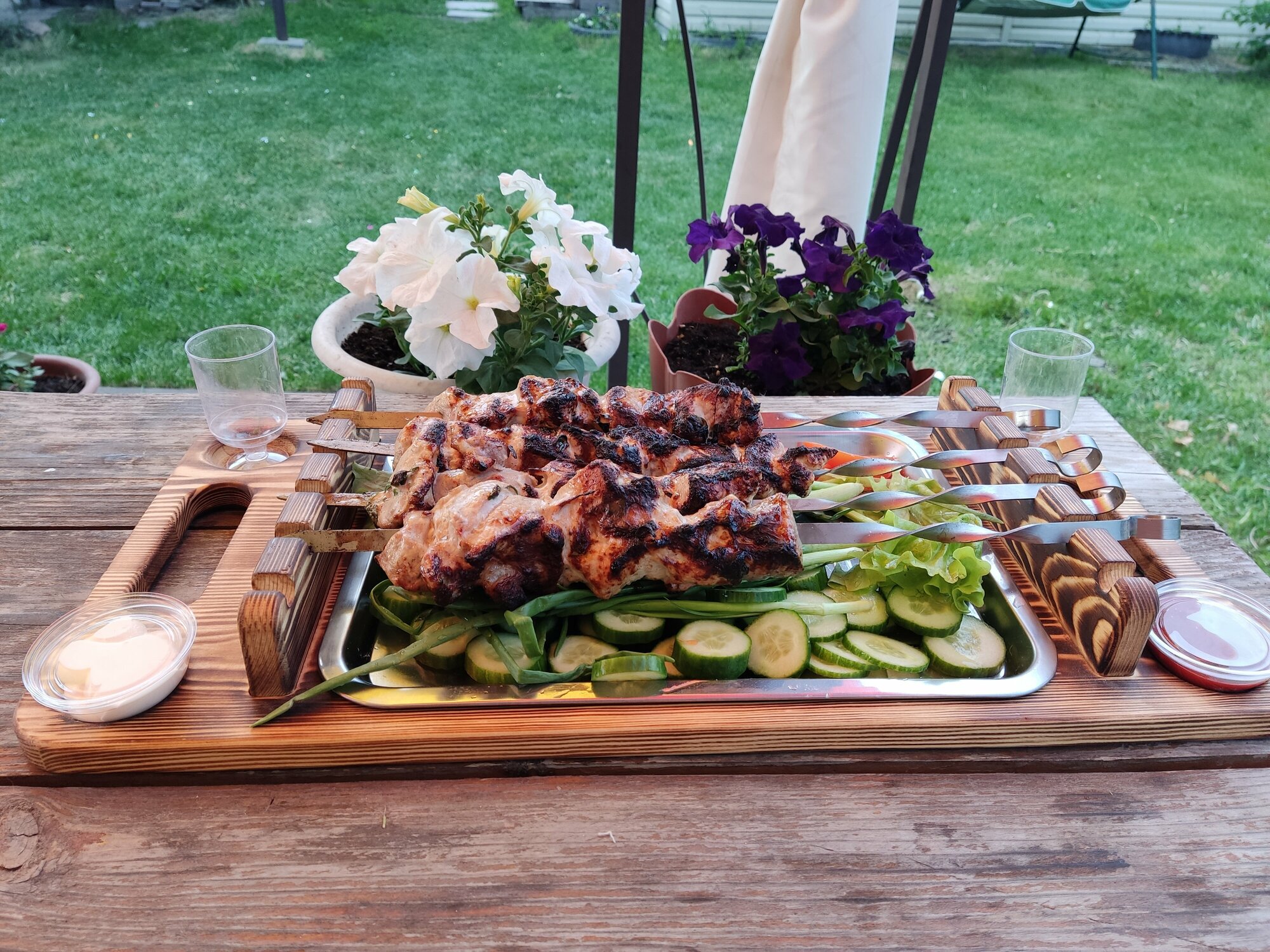 Поднос для подачи шашлыка с гастроемкостью интересное: