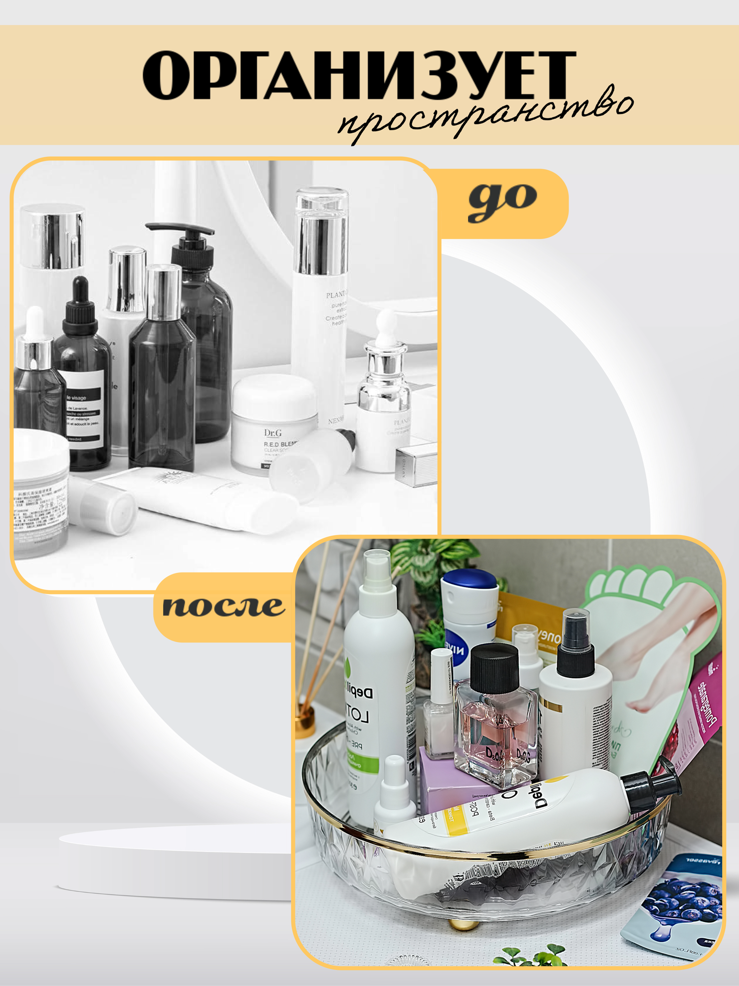 Поднос вращающийся круглый для кухни органайзер 27 см прозрачный интересное:
