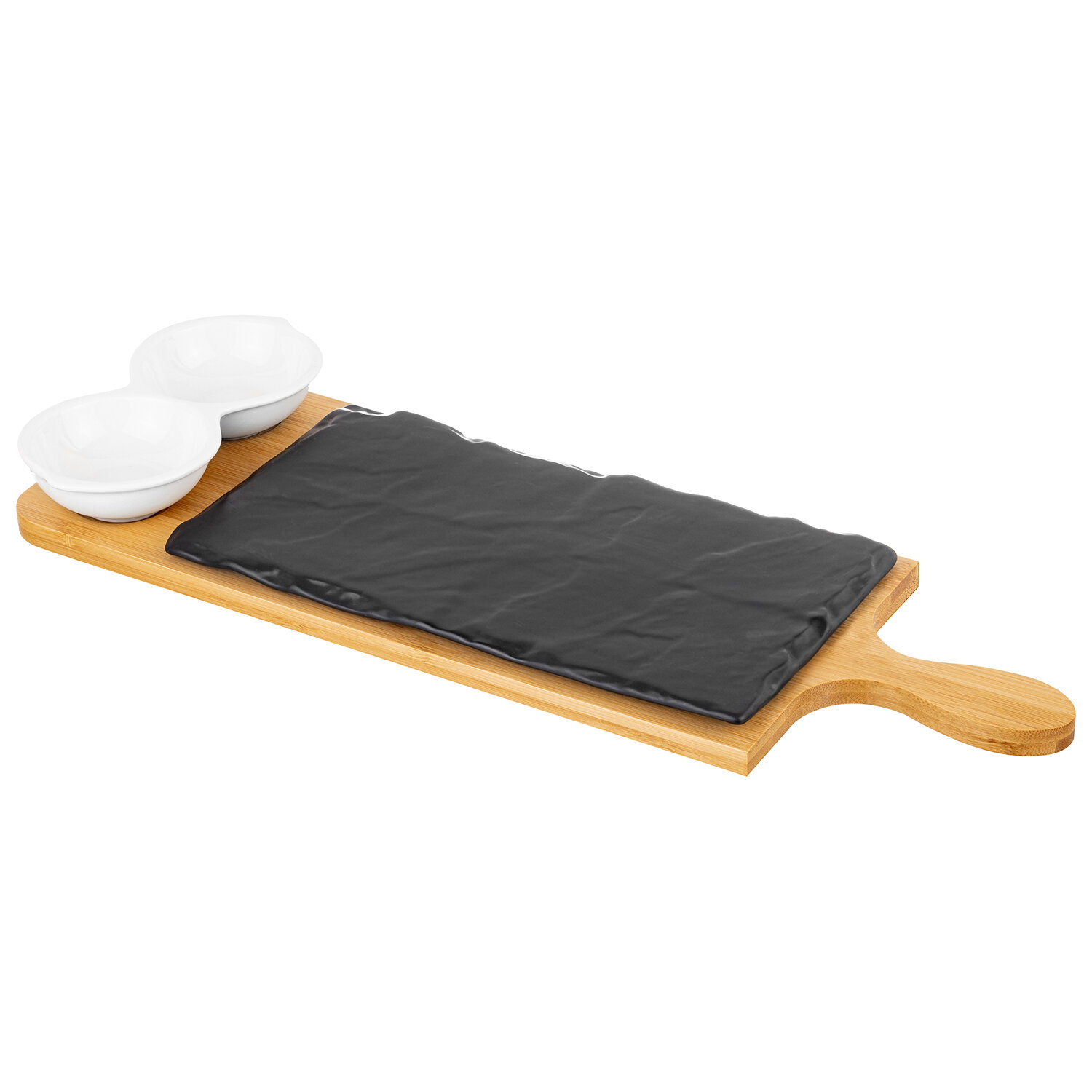 | Дополнительная информация | Набор для сервировки сыра "Айсберг" 43*16*3 см, разделочная доска 42*14,2*1 см, поднос - 25*13*1 см и соусник с двумя секциями, 15,5*7,7*2,7 см, 80 мл - каждая секция |