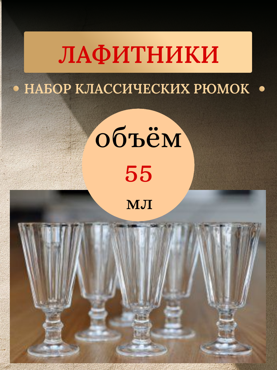 Лафитники, набор рюмок граненых, рюмки классические на ножке 55мл 6шт интересное: