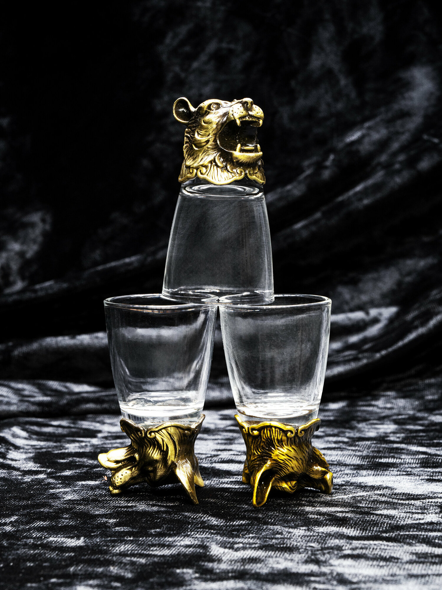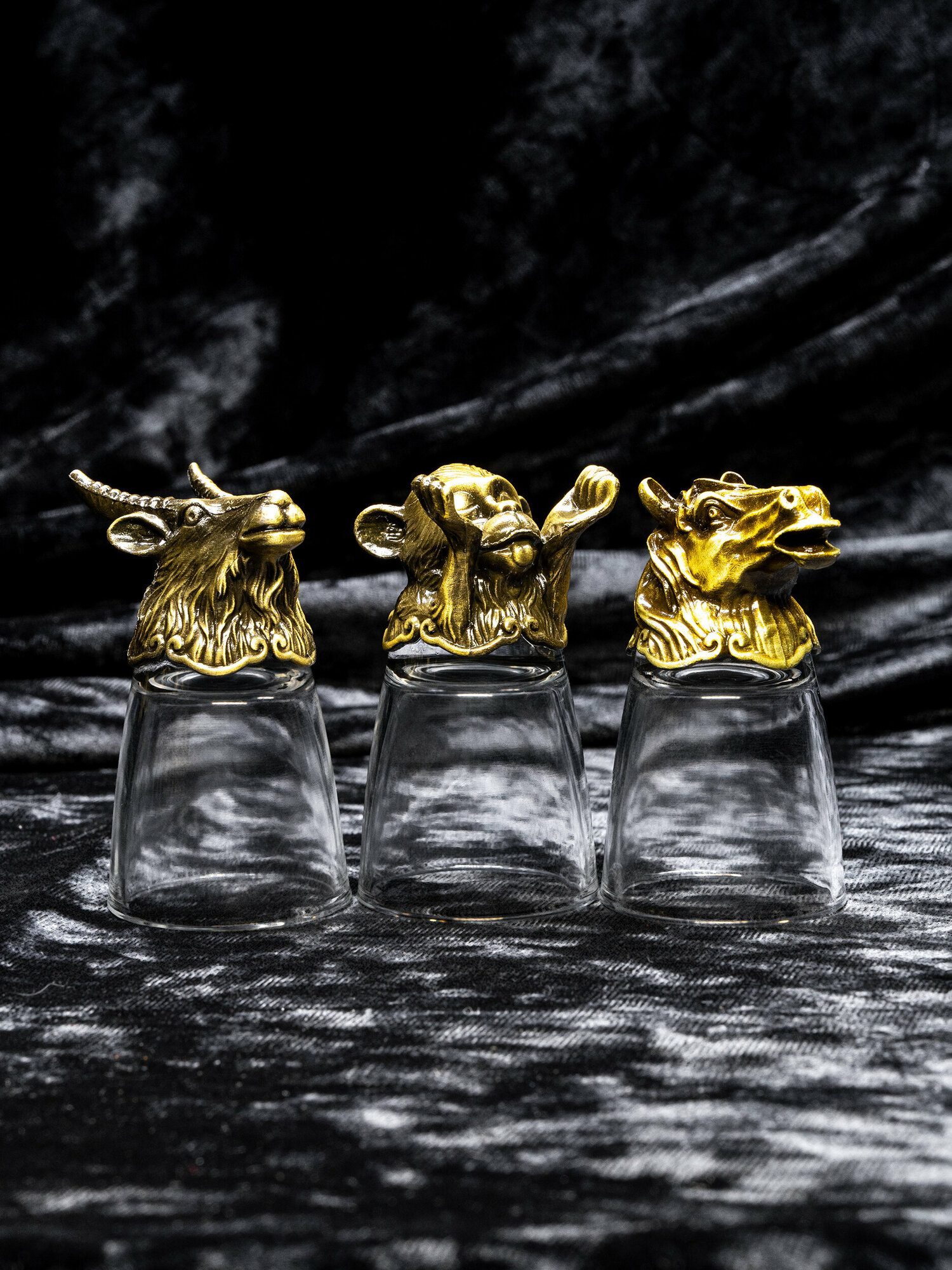 Купить Рюмки-перевертыши с подставкой из латуни, стекла и металла 12 штук, 30мл