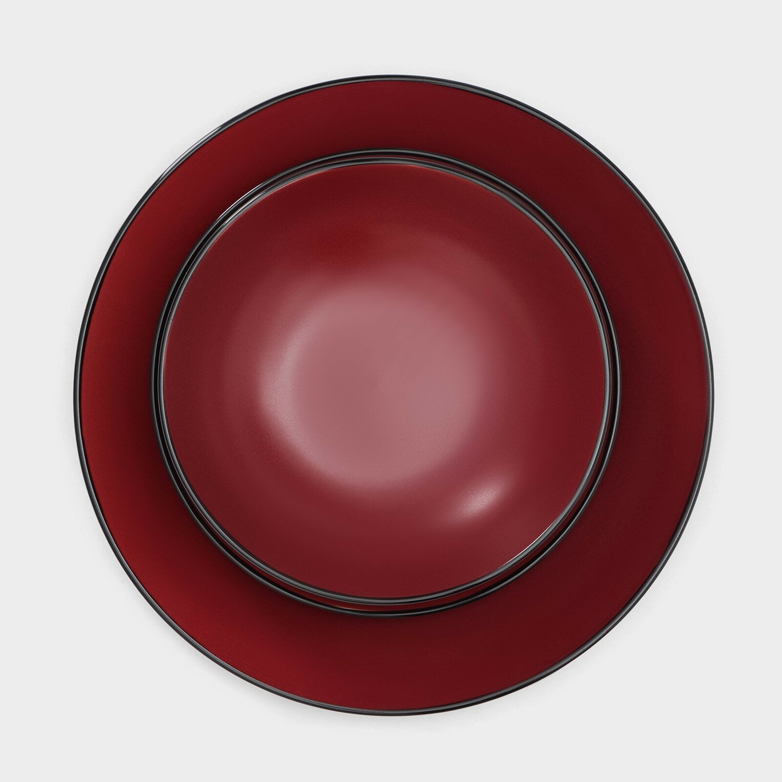 Сервиз керамический столовый Доляна «Ваниль», 18 предметов: 6 тарелок d=19 см, 6 тарелок d=27 см, 6 мисок d=19 см, цвет бордовый