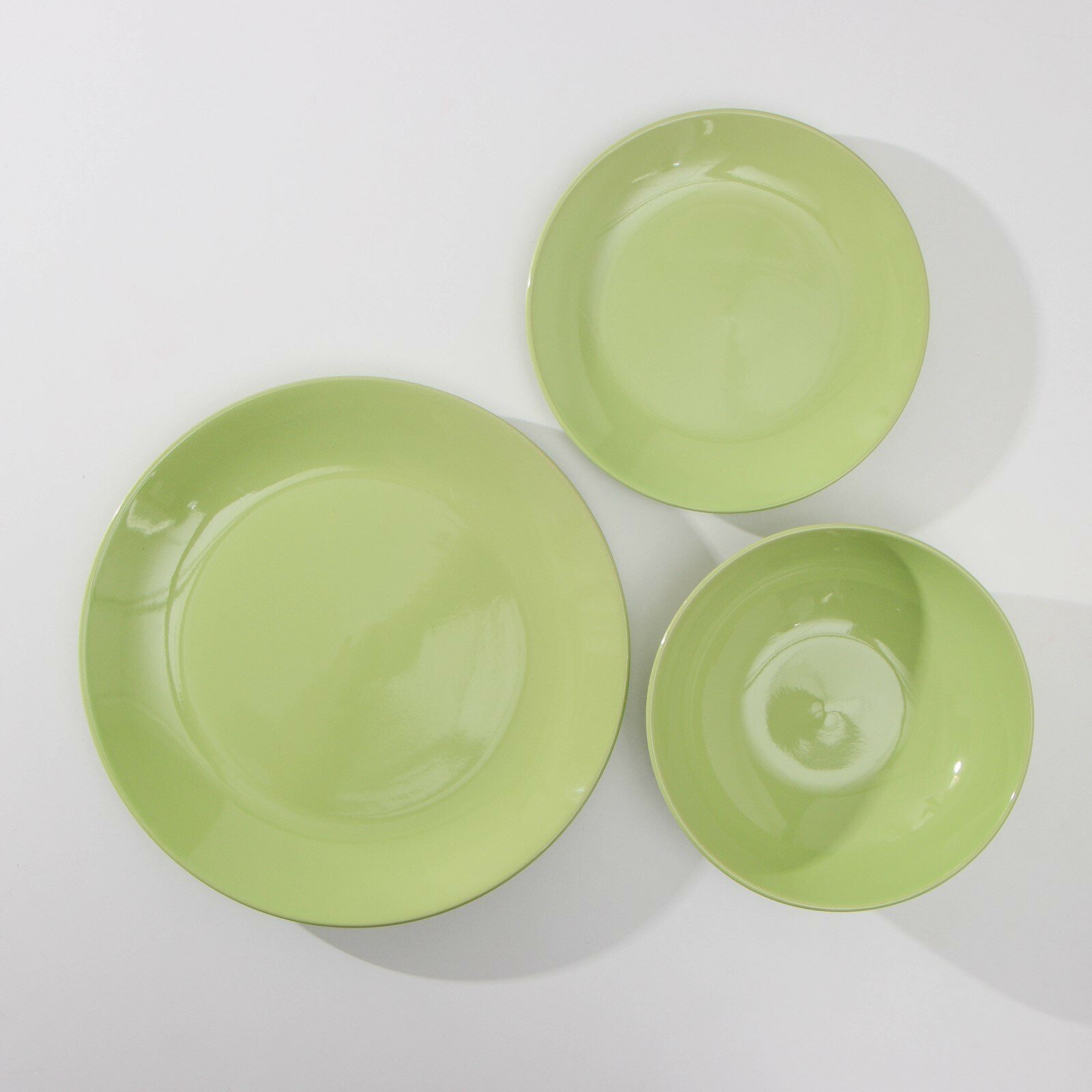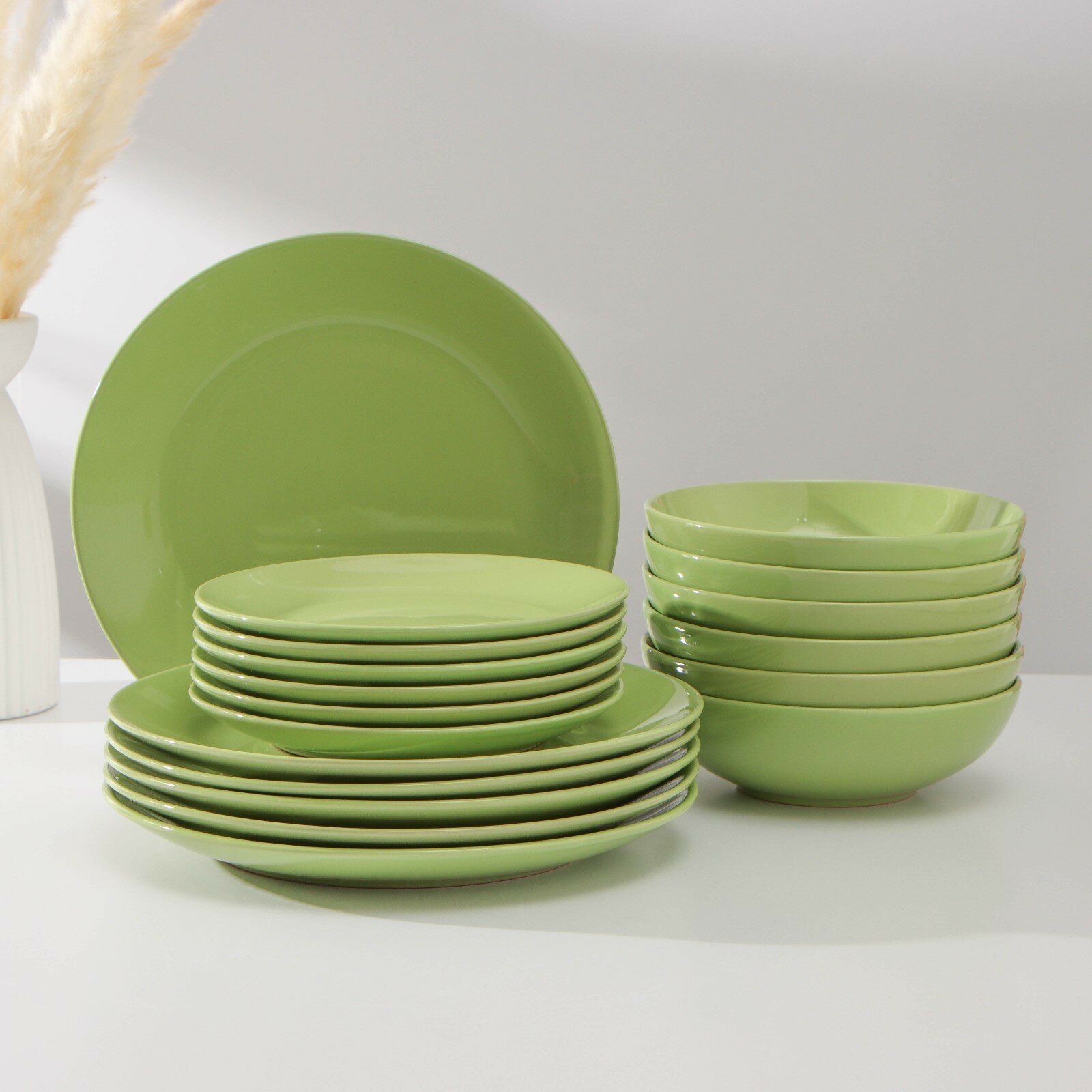 Набор тарелок керамических "Пастель", 18 предметов: 6 тарелок d=19 см, 6 тарелок d=27 см, 6 мисок d=19 см, цвет зелёный