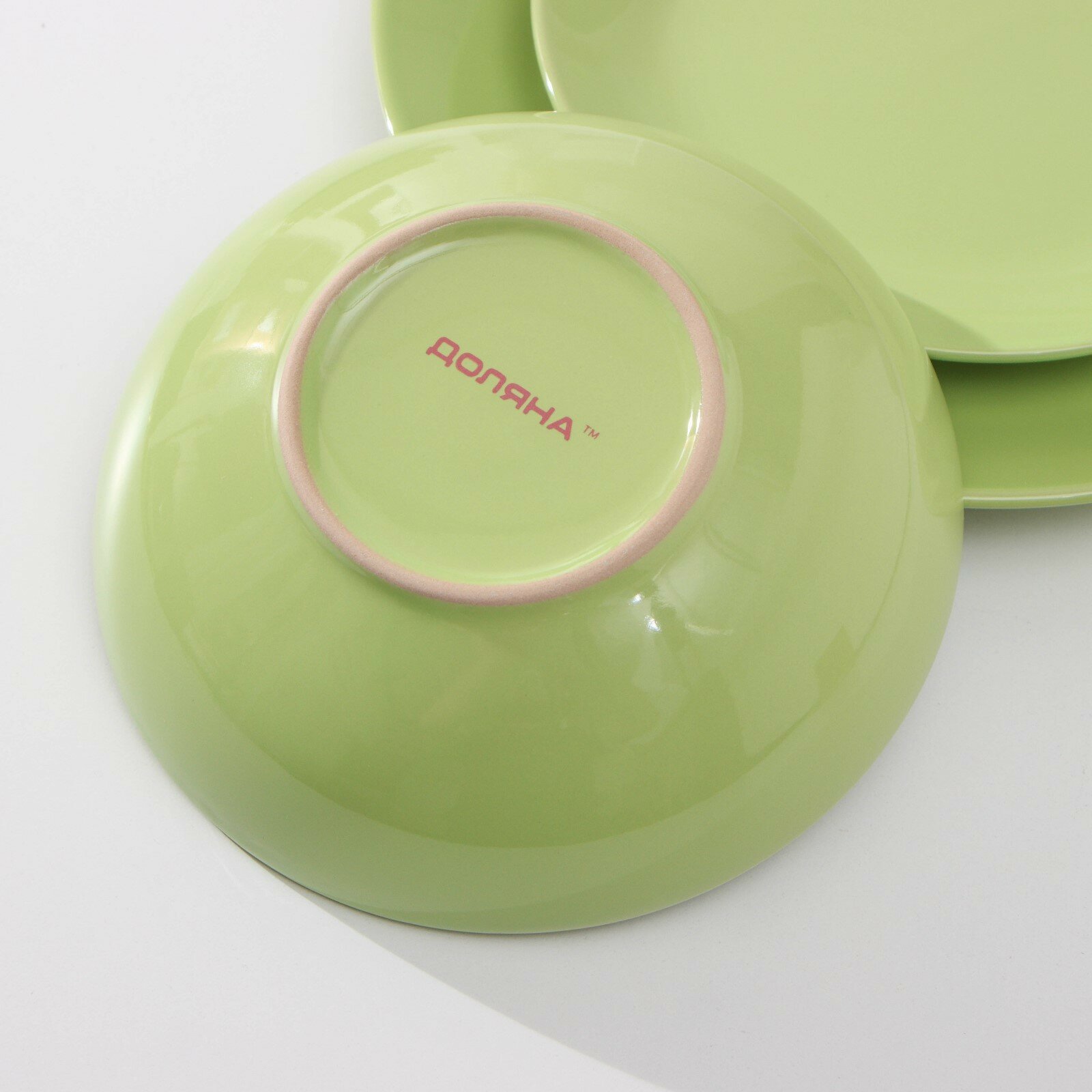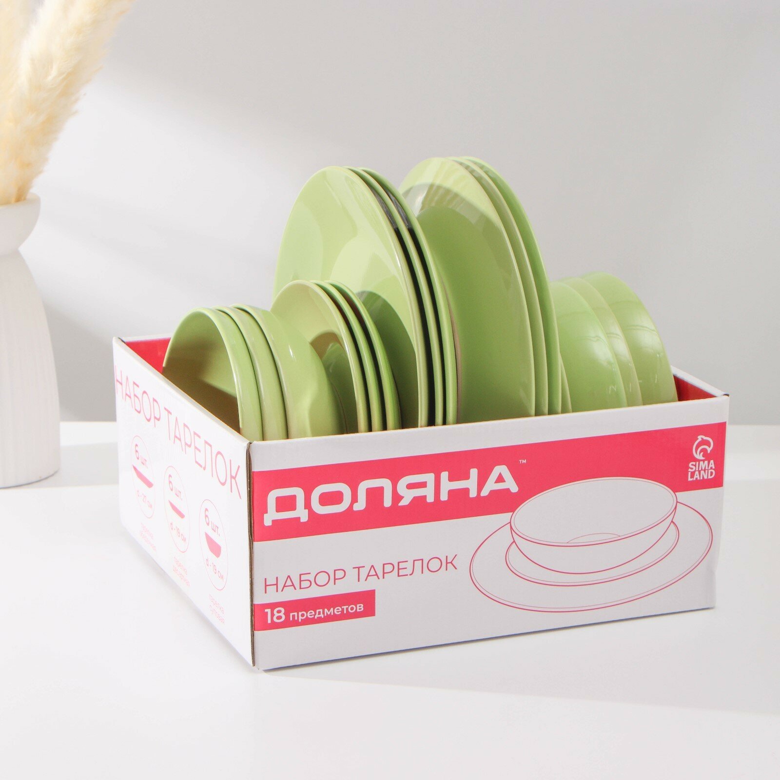 Купить Набор тарелок Доляна "Пастель", 18 предметов: 6 тарелок d-19 см, 6 тарелок d-27 см, 6 мисок d-19 см, цвет зеленый
