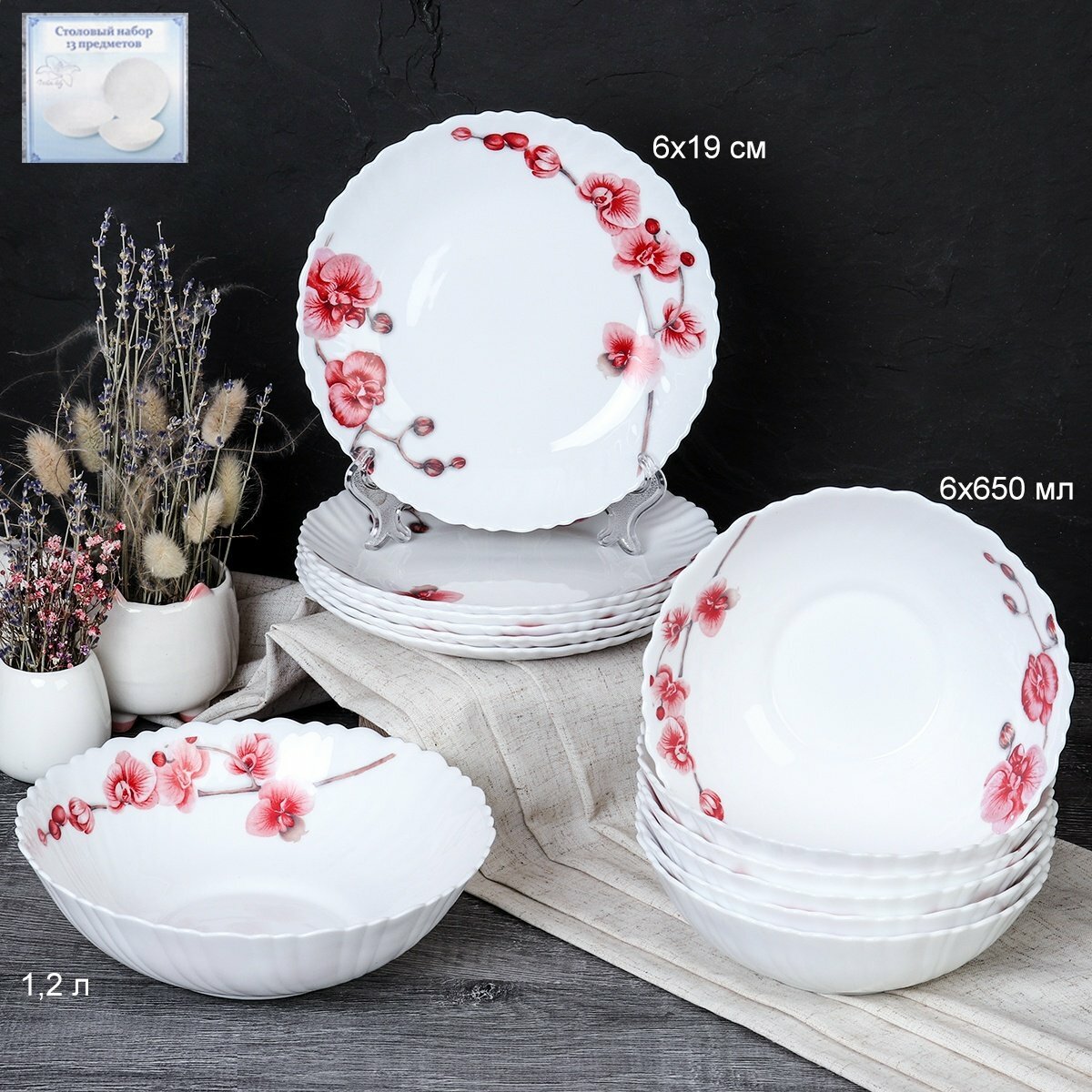 Купить Набор посуды столовой "Ветка орхидеи" на 6 персон/ Сервиз столовый 13 предметов