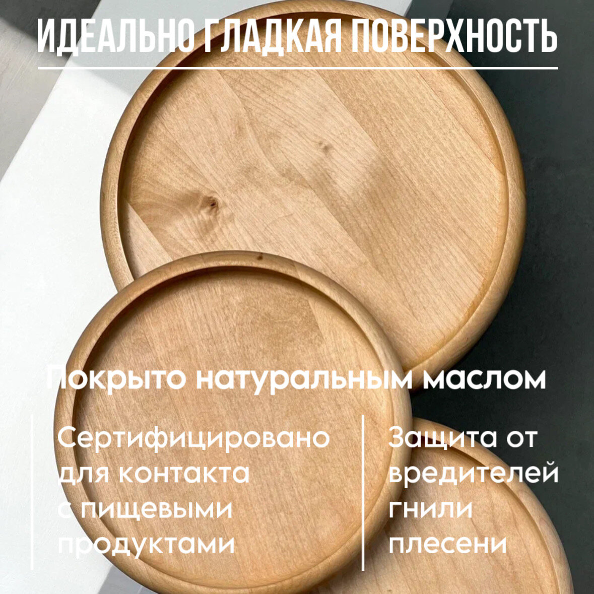 Набор тарелок деревянных плоских из березы для подачи и сервировки блюд интересное: