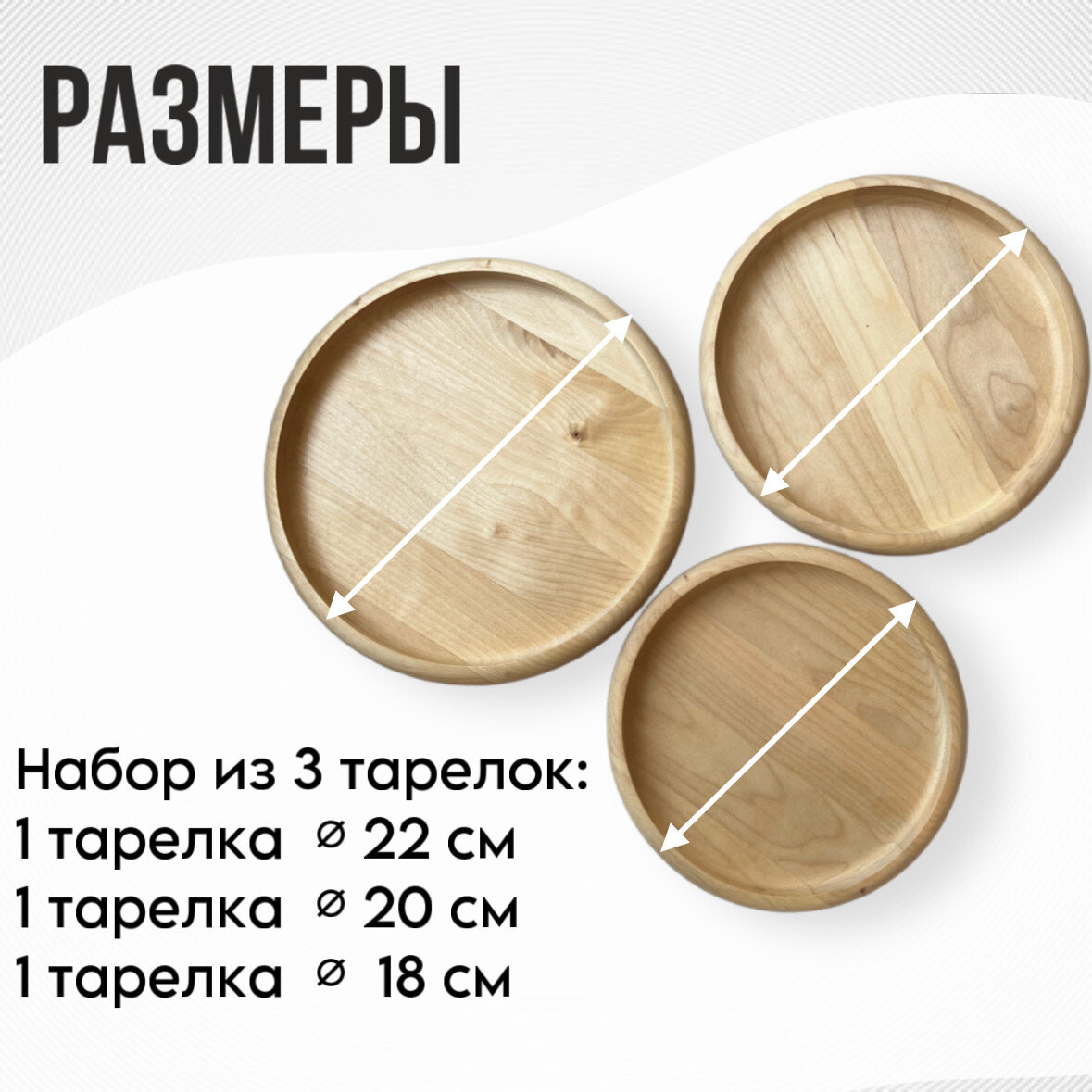 Купить Набор тарелок деревянных плоских из березы для подачи и сервировки блюд