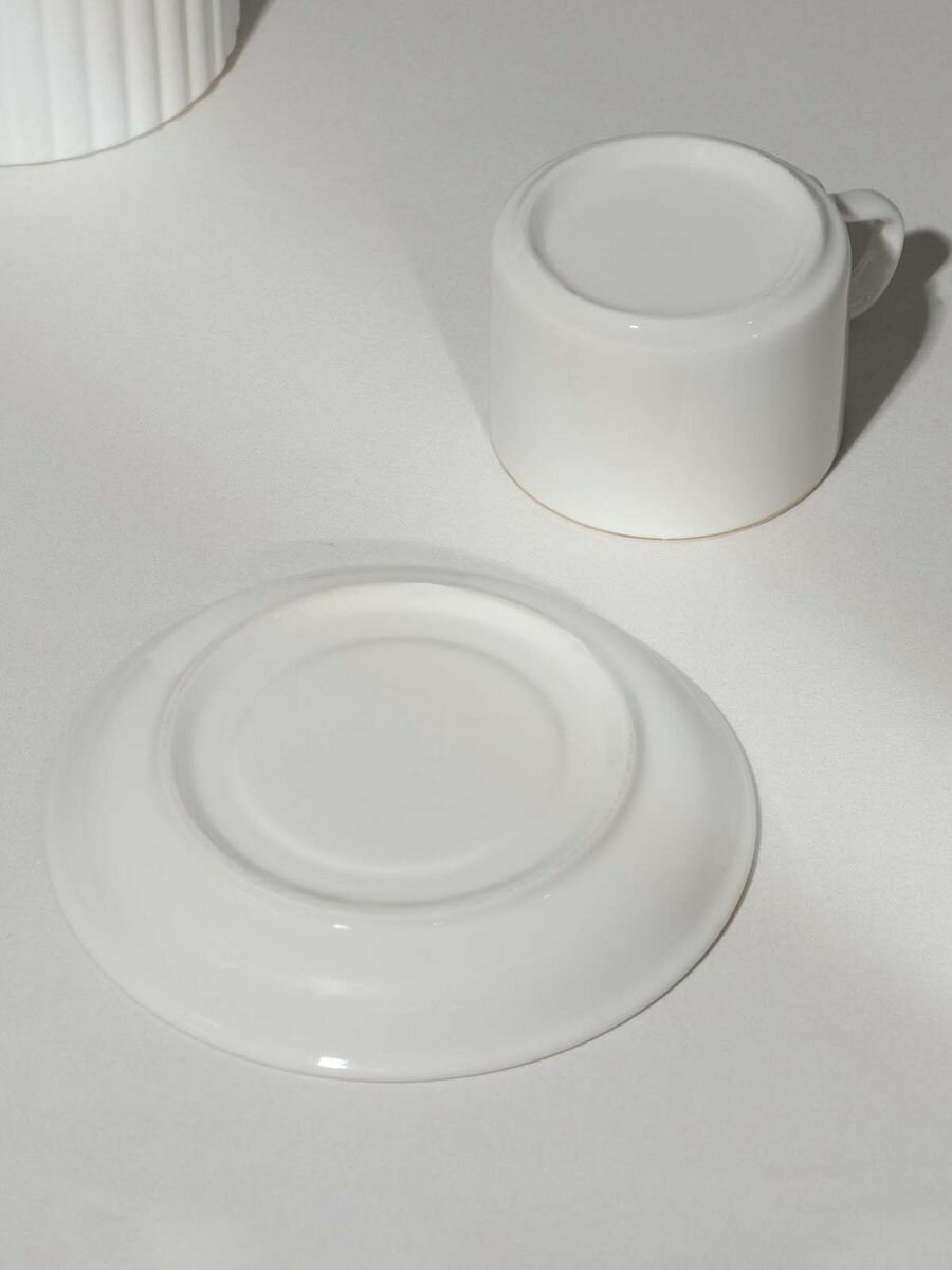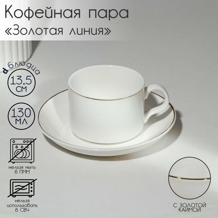 Кофейная пара фарфоровая «Золотая линия», 2 предмета: кружка 130 мл, блюдце d=13,5 см, цвет белый интересное: