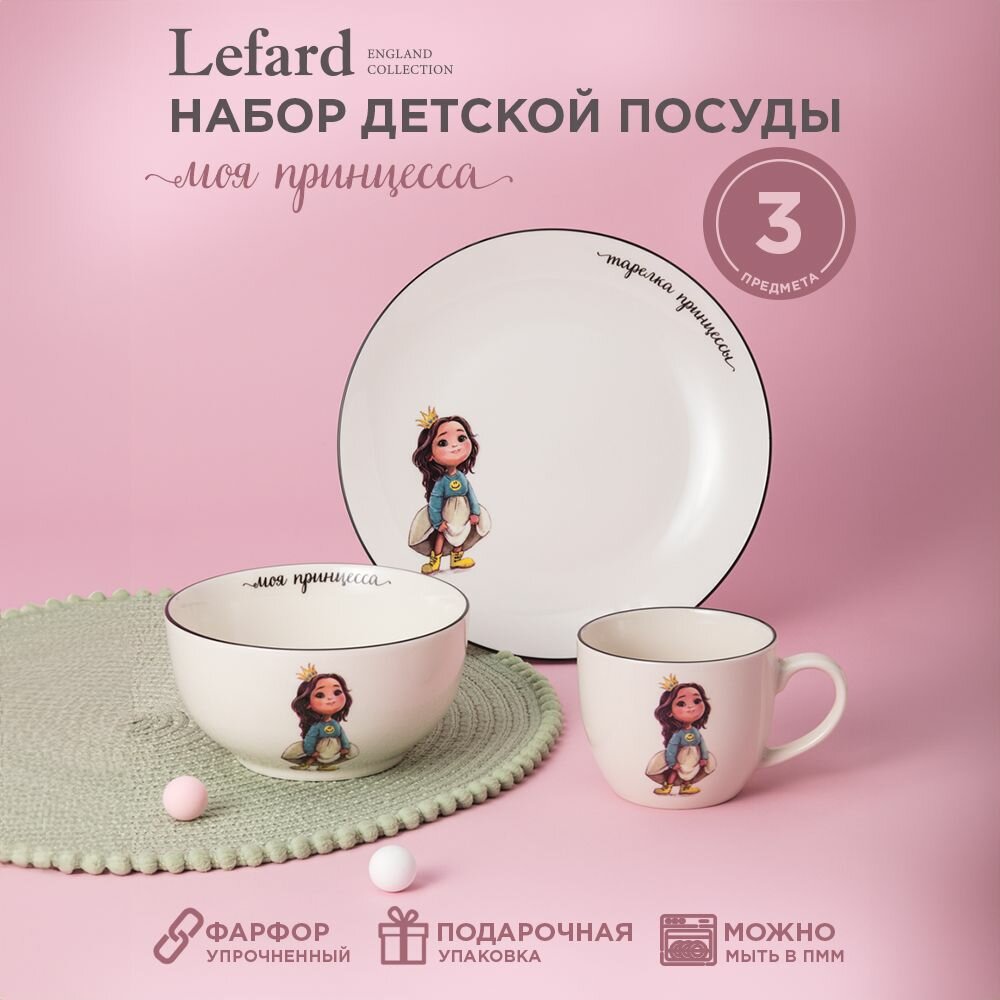 Набор детской посуды из фарфора Lefard "Принцесса", 3 предмета : салатник 470 мл, тарелка 20 см, кружка 220 мл интересное: