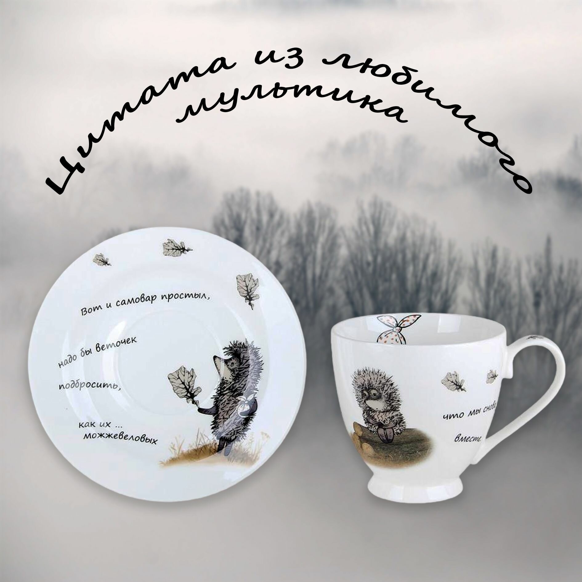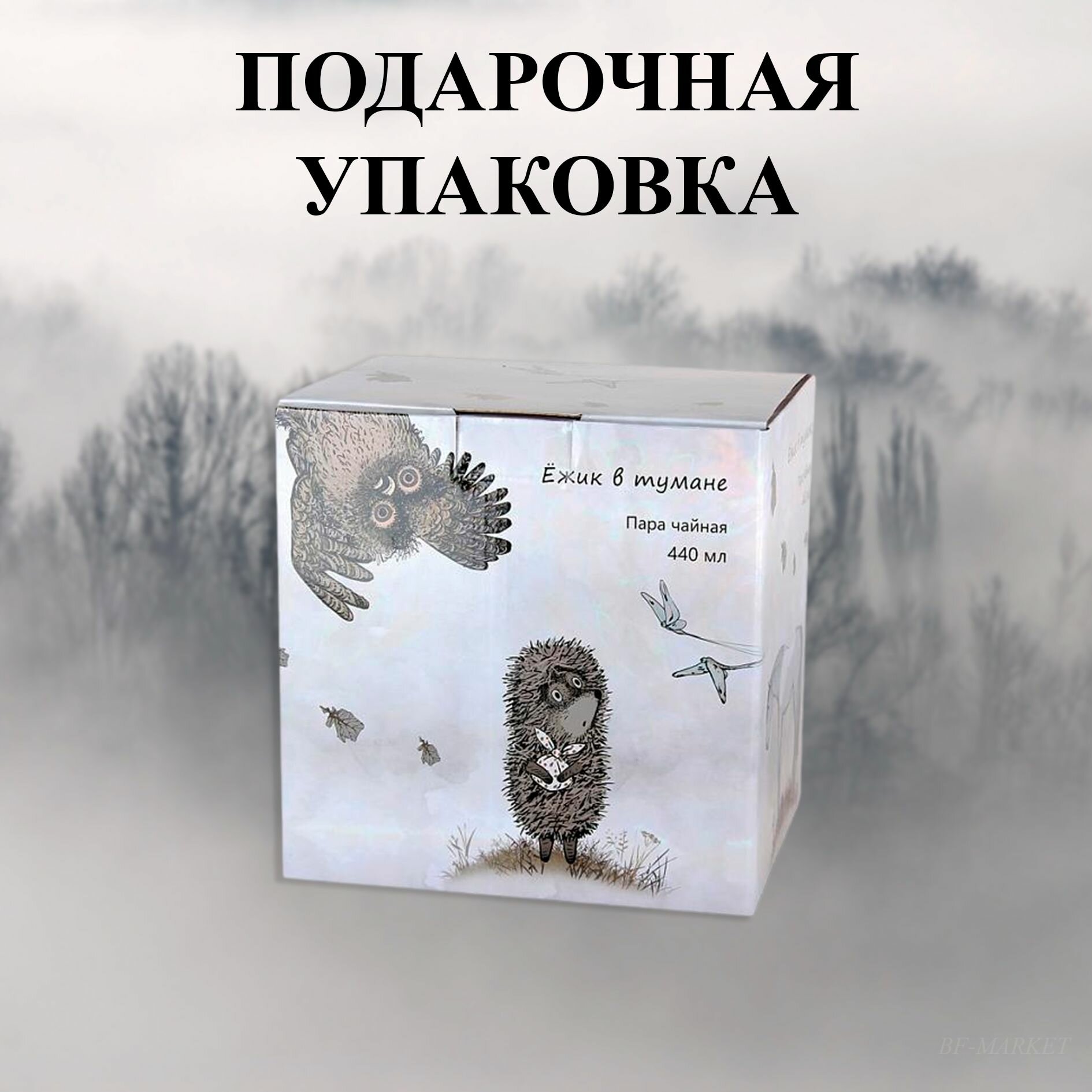 Чайная пара фарфор 440 мл Ежик в тумане в подарочной упаковке