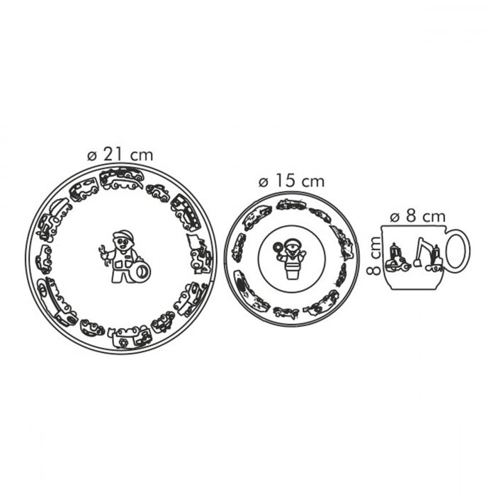 | Комплектация | тарелка 21 см, глубокая тарелка 15 см, чашка |
