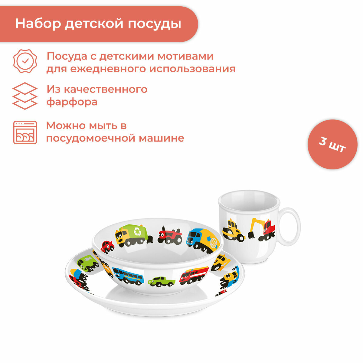 Набор детской посуды Tescoma BAMBINI машинки 667955, фарфор, 3 предмета