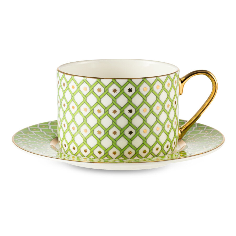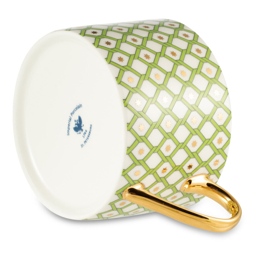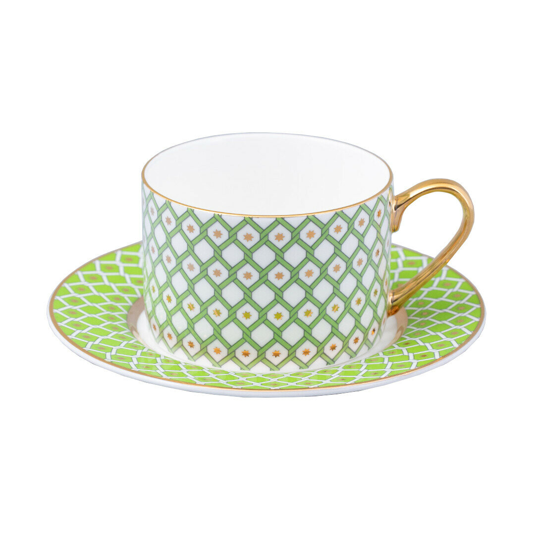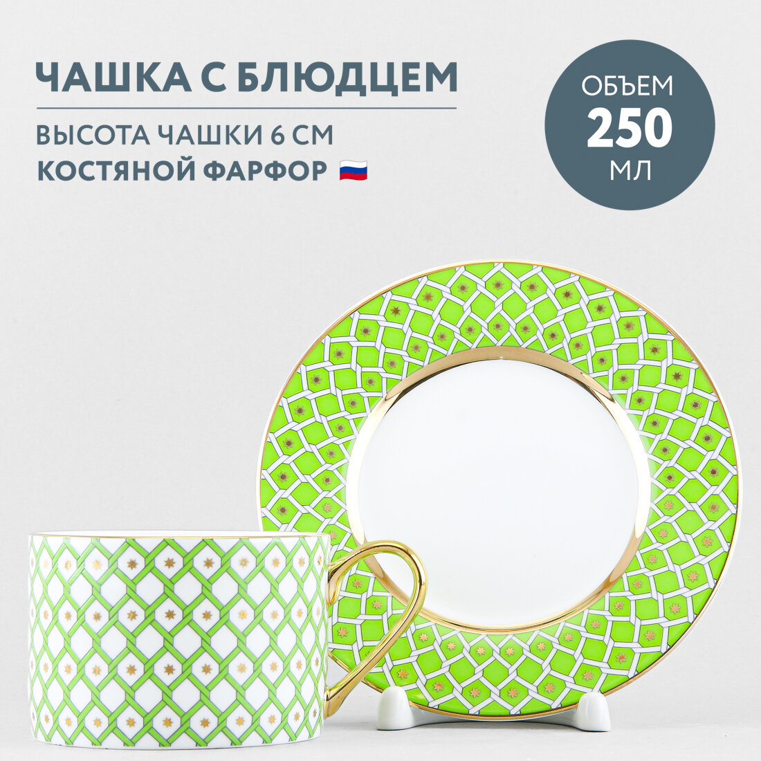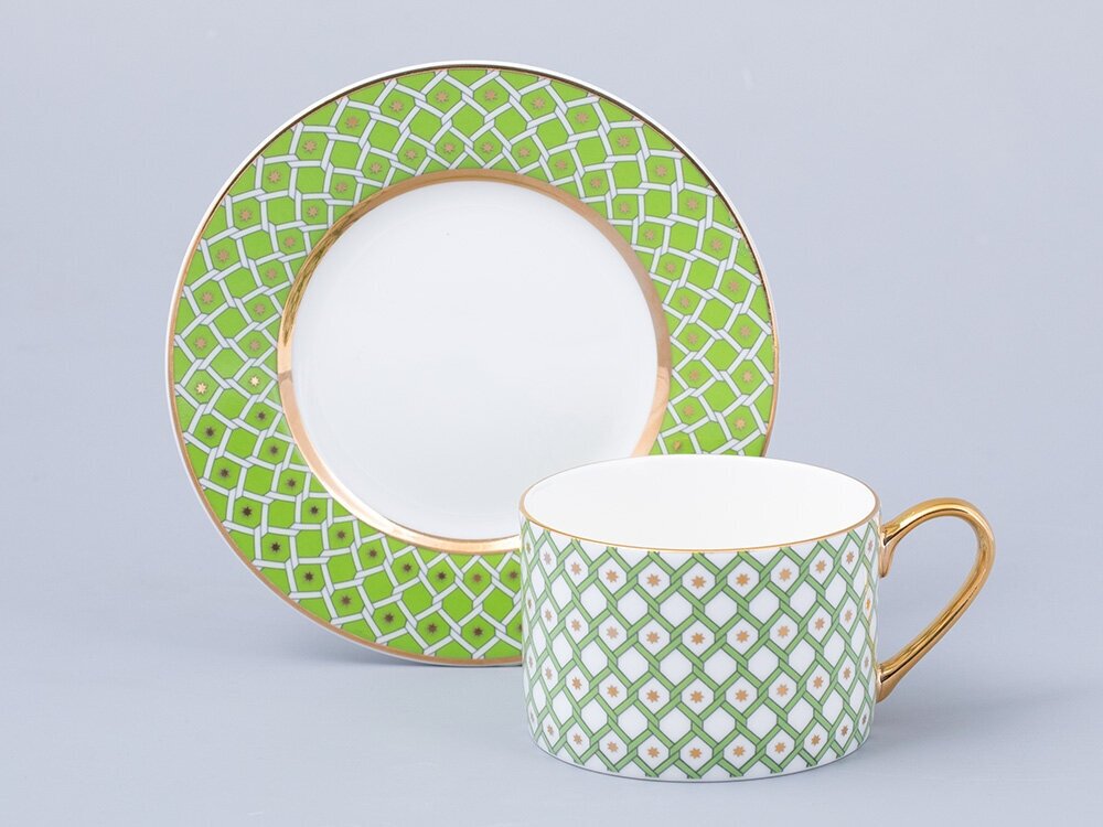Купить Чайная пара, чашка с блюдцем, 250 мл. Императорский фарфоровый завод ИФЗ. Форма "Идиллия", рисунок "Лайм 1". Костяной фарфор.