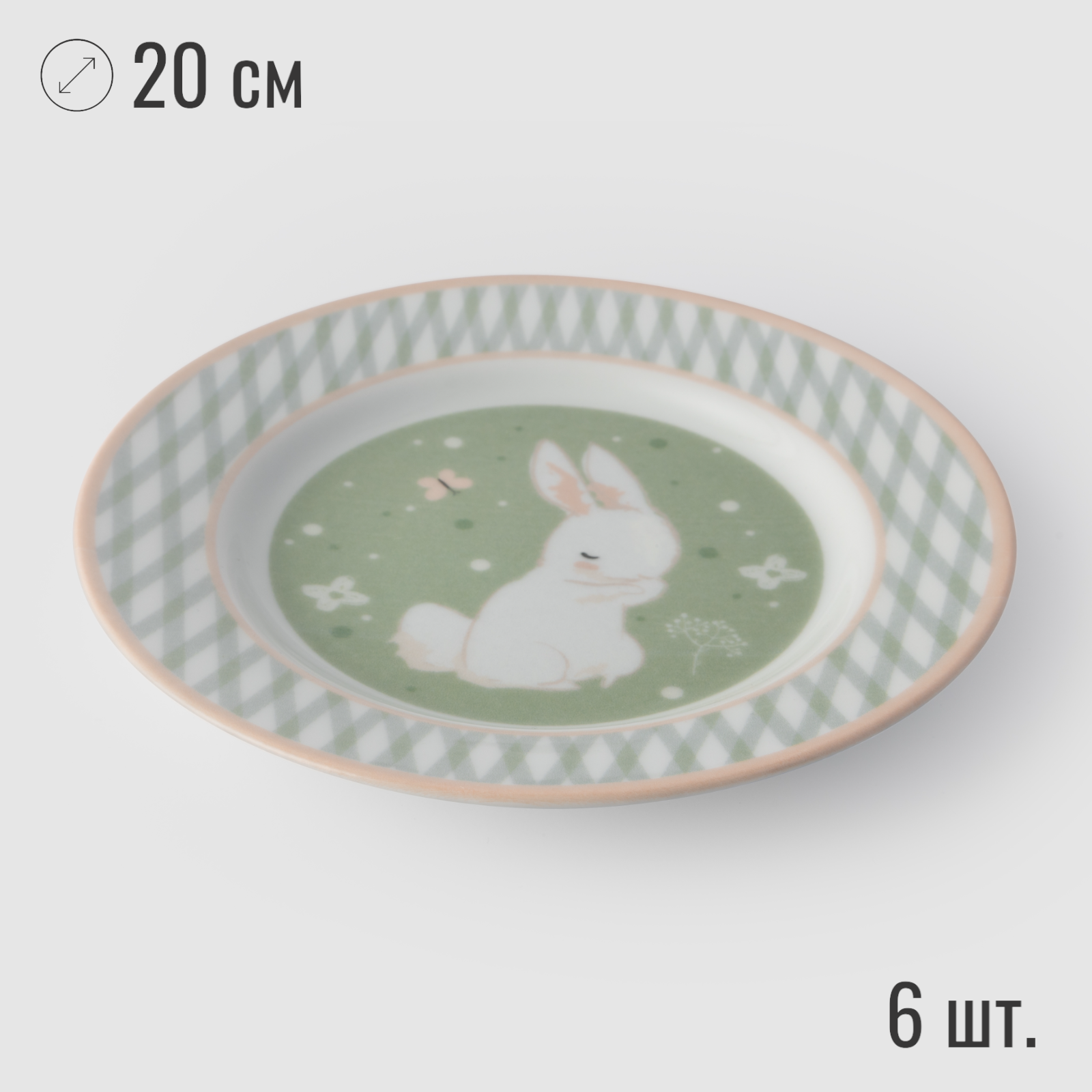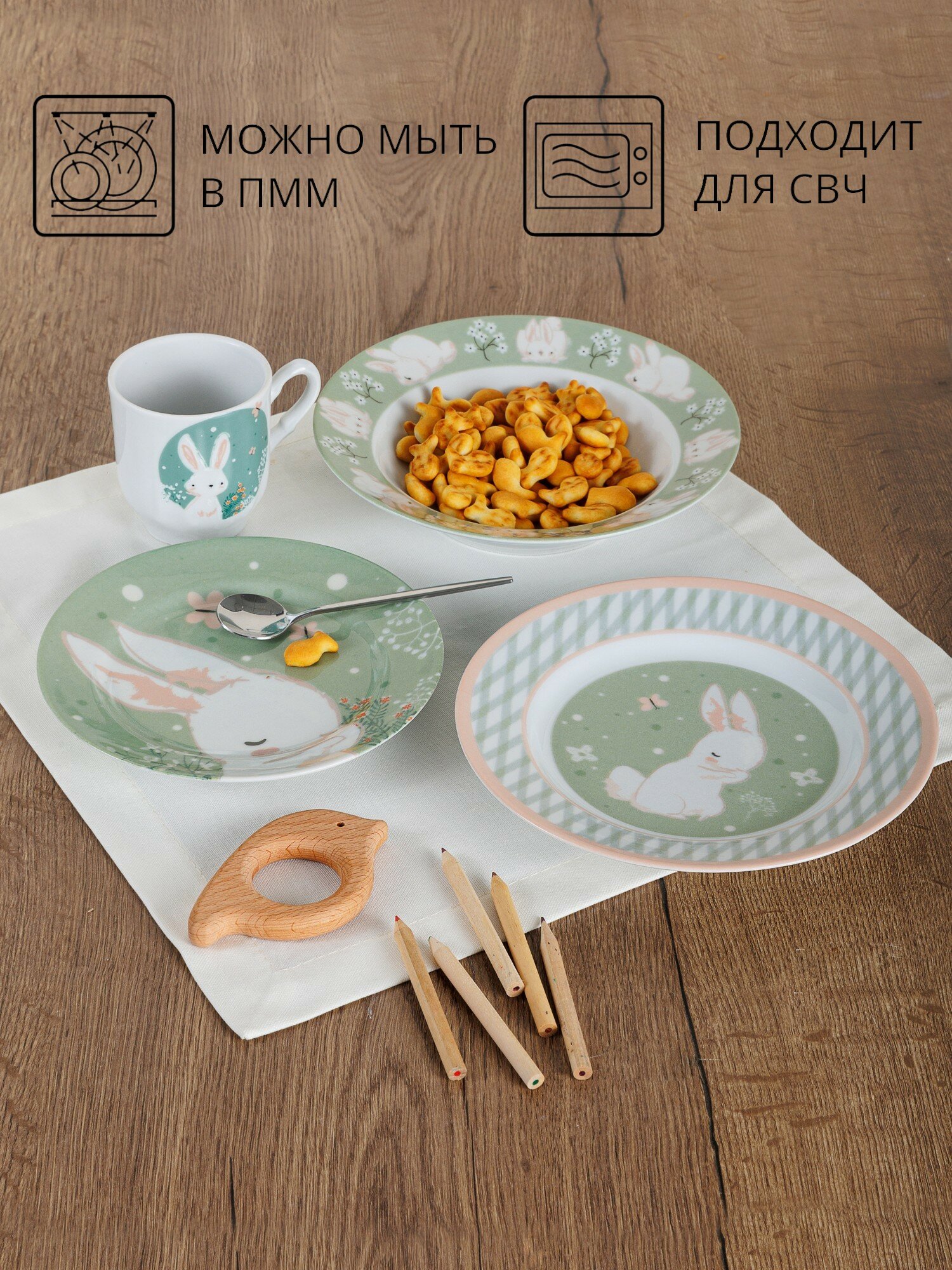 Купить Набор посуды столовой на 6 персон с кружками, 24 предмета "Зайка", фарфор, сервиз обеденный