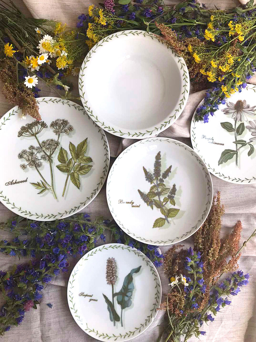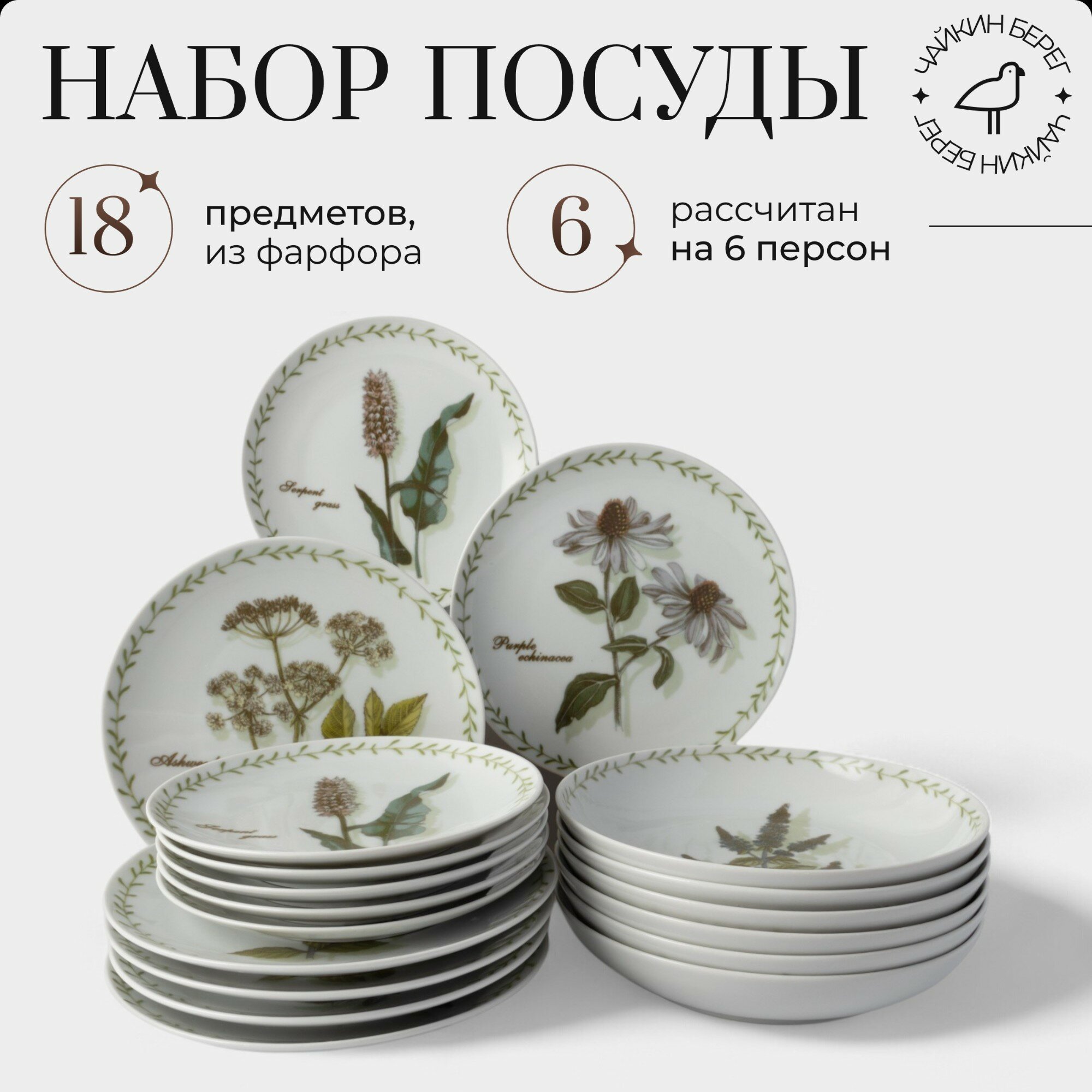 Купить Набор посуды столовой на 6 персон, 18 предметов "Гербарий", фарфор, сервиз обеденный