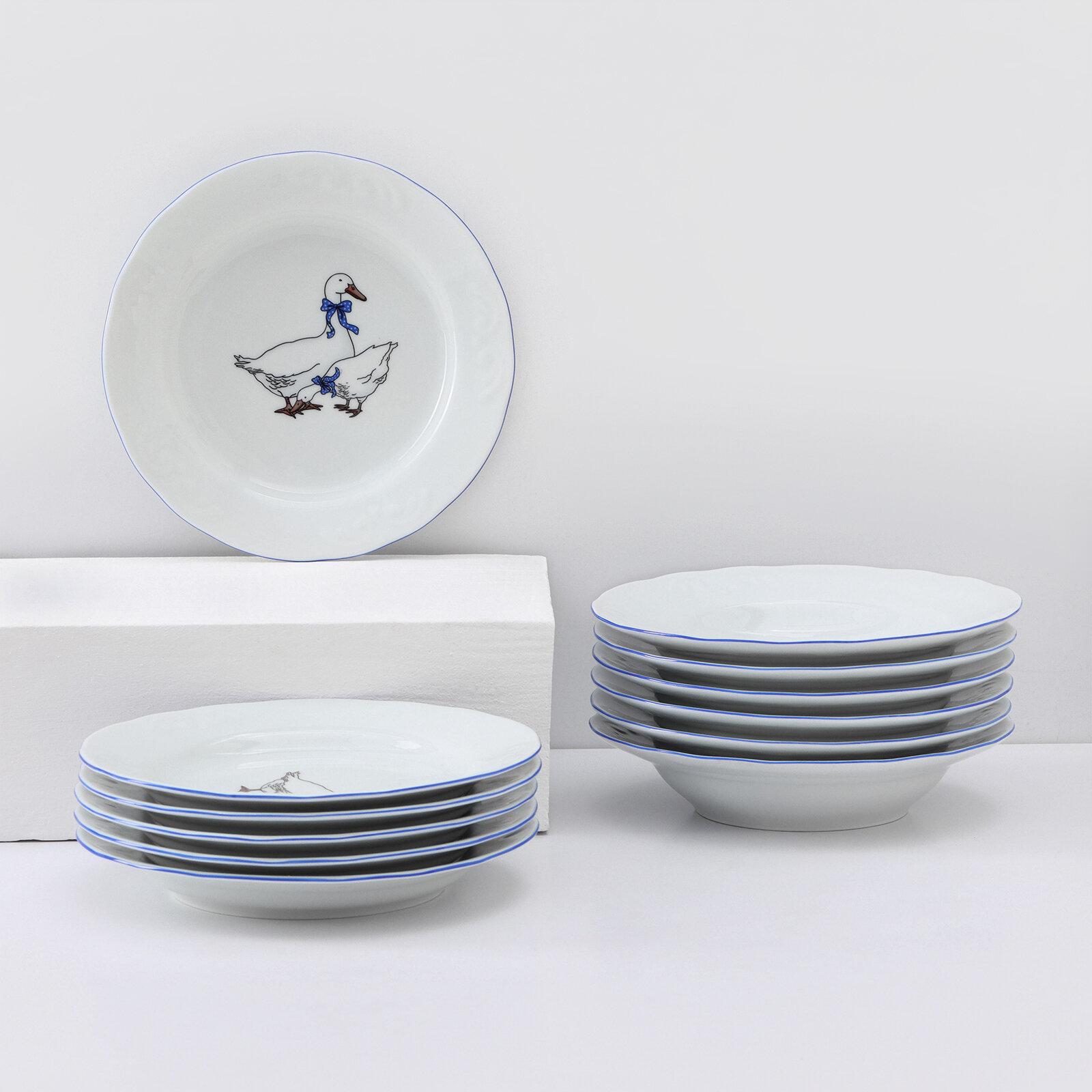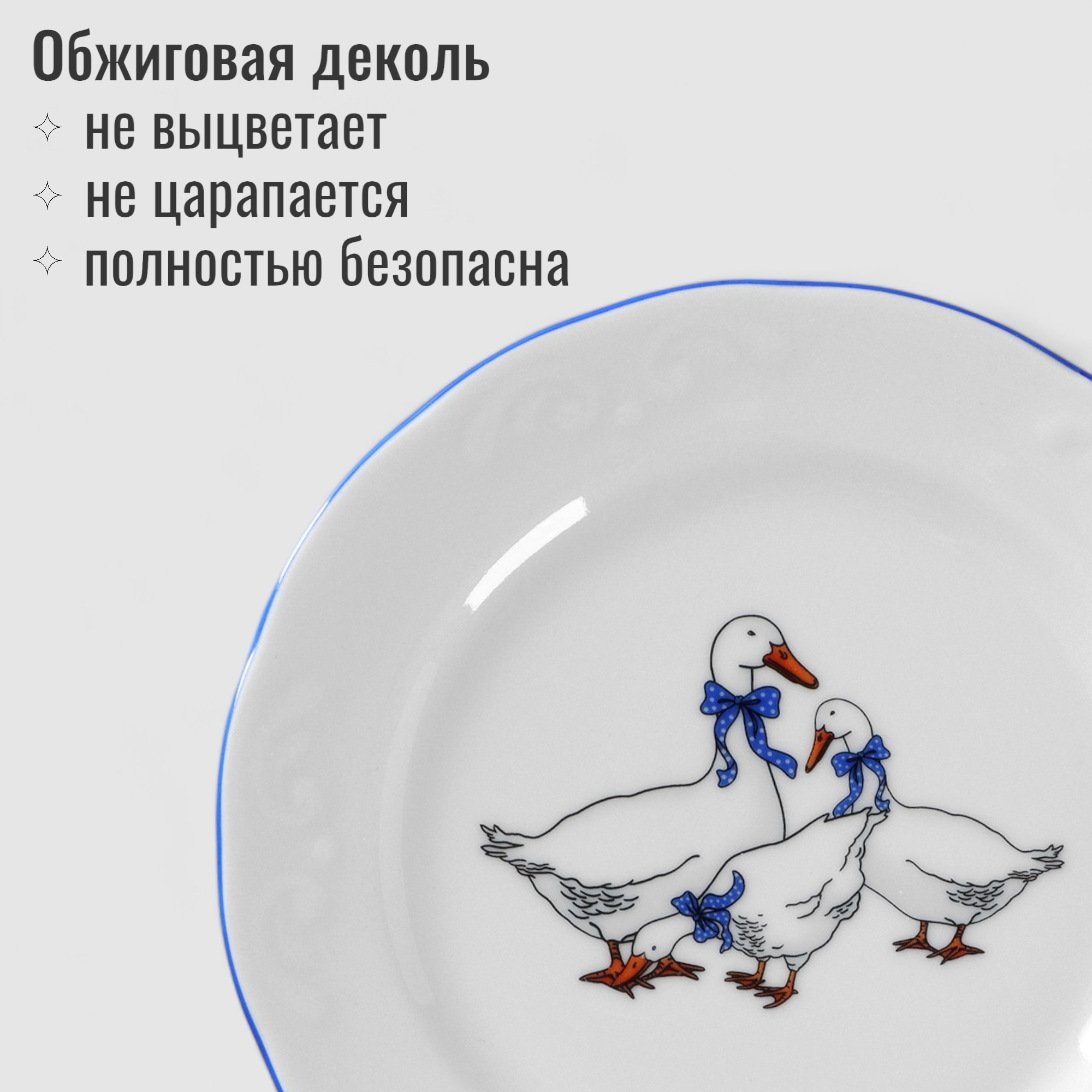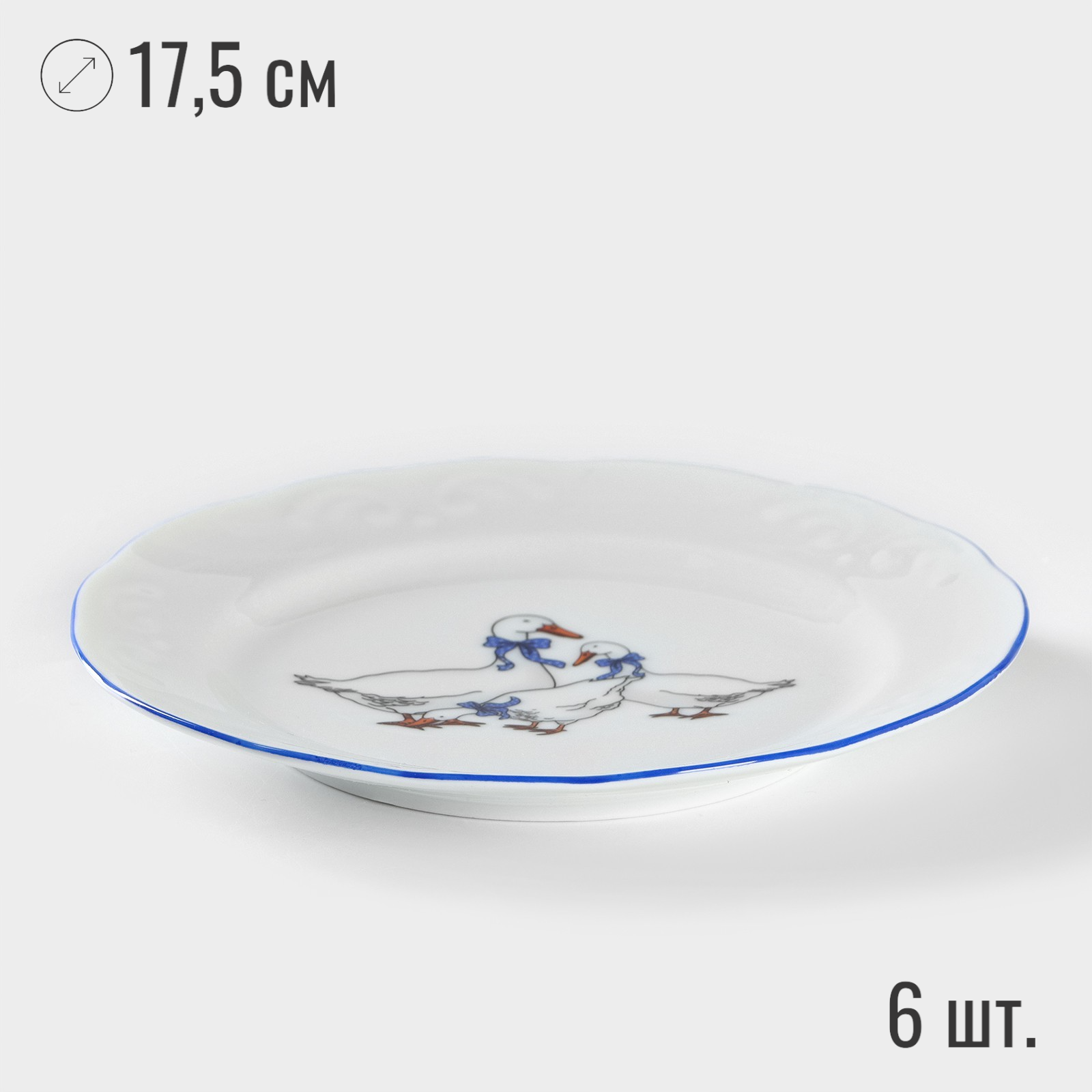 Сервиз обеденный на 6 персон, 18 предметов "Гуси", фарфоровый набор посуды столовой