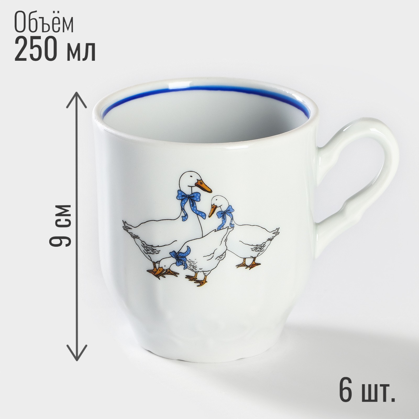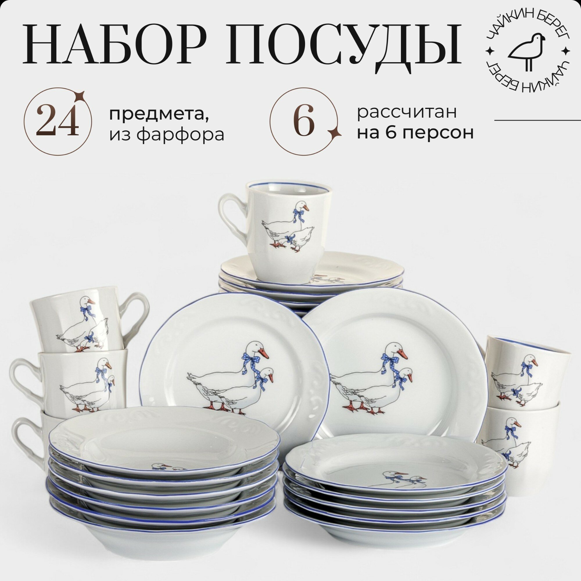 Купить Набор посуды столовой на 6 персон с кружками, 24 предмета "Гуси", фарфор, сервиз обеденный