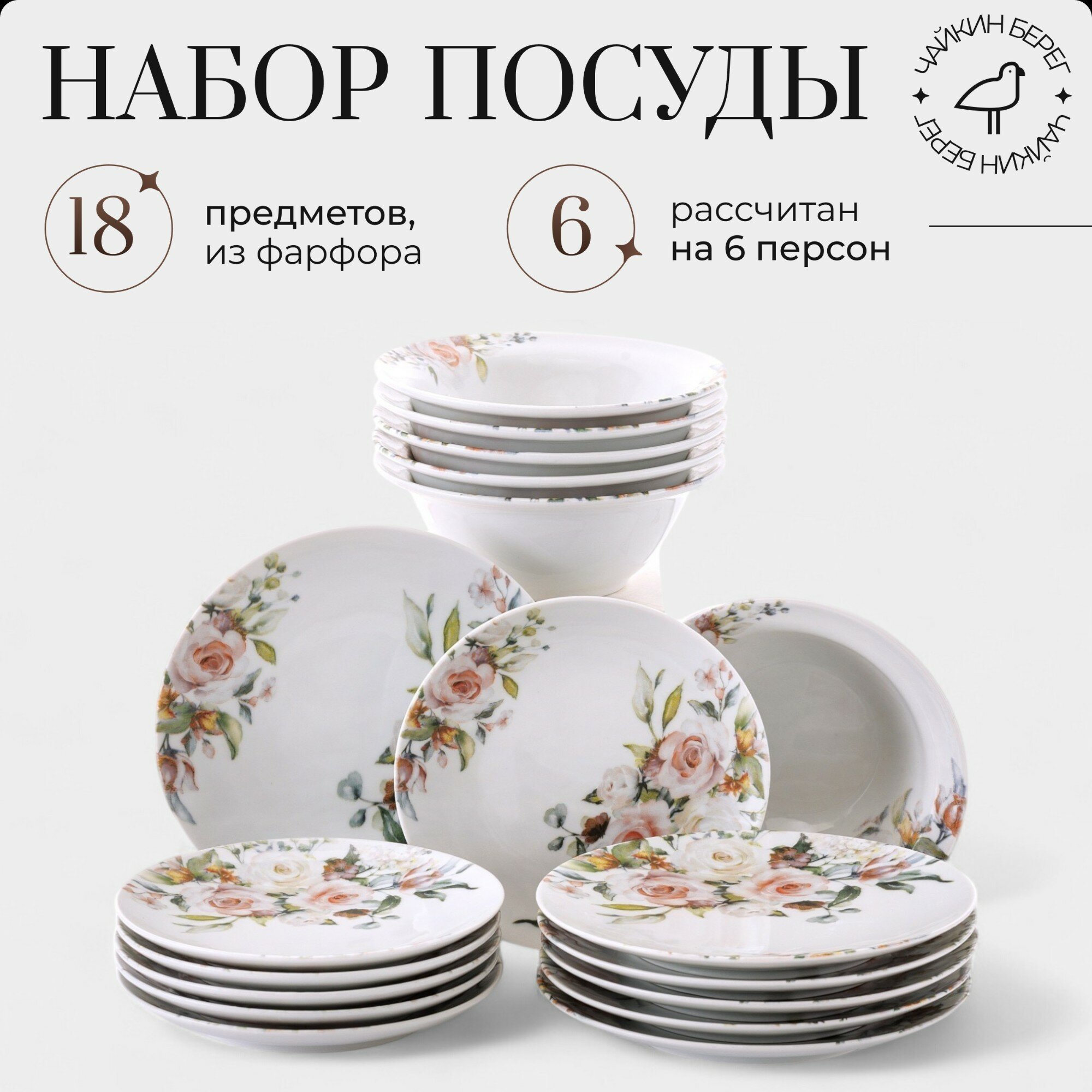 Купить Набор посуды столовой на 6 персон, 18 предметов "Розы", сервиз обеденный фарфоровый