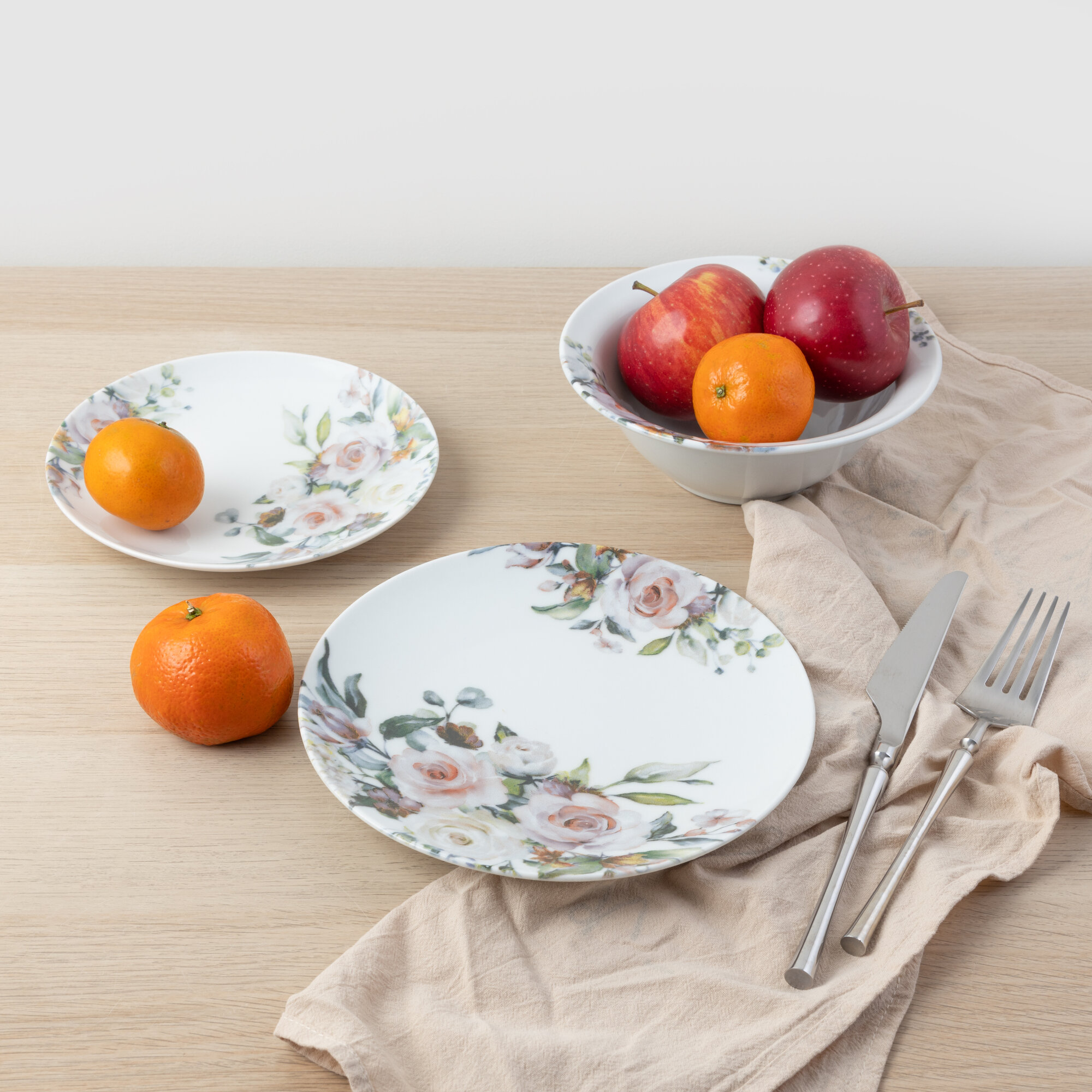Набор посуды столовой на 6 персон, 18 предметов "Цветущий сад", сервиз обеденный фарфоровый