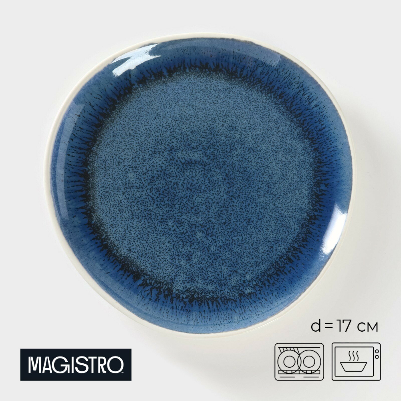Купить Тарелка фарфоровая десертная Magistro Ocean, d=17 см, цвет синий