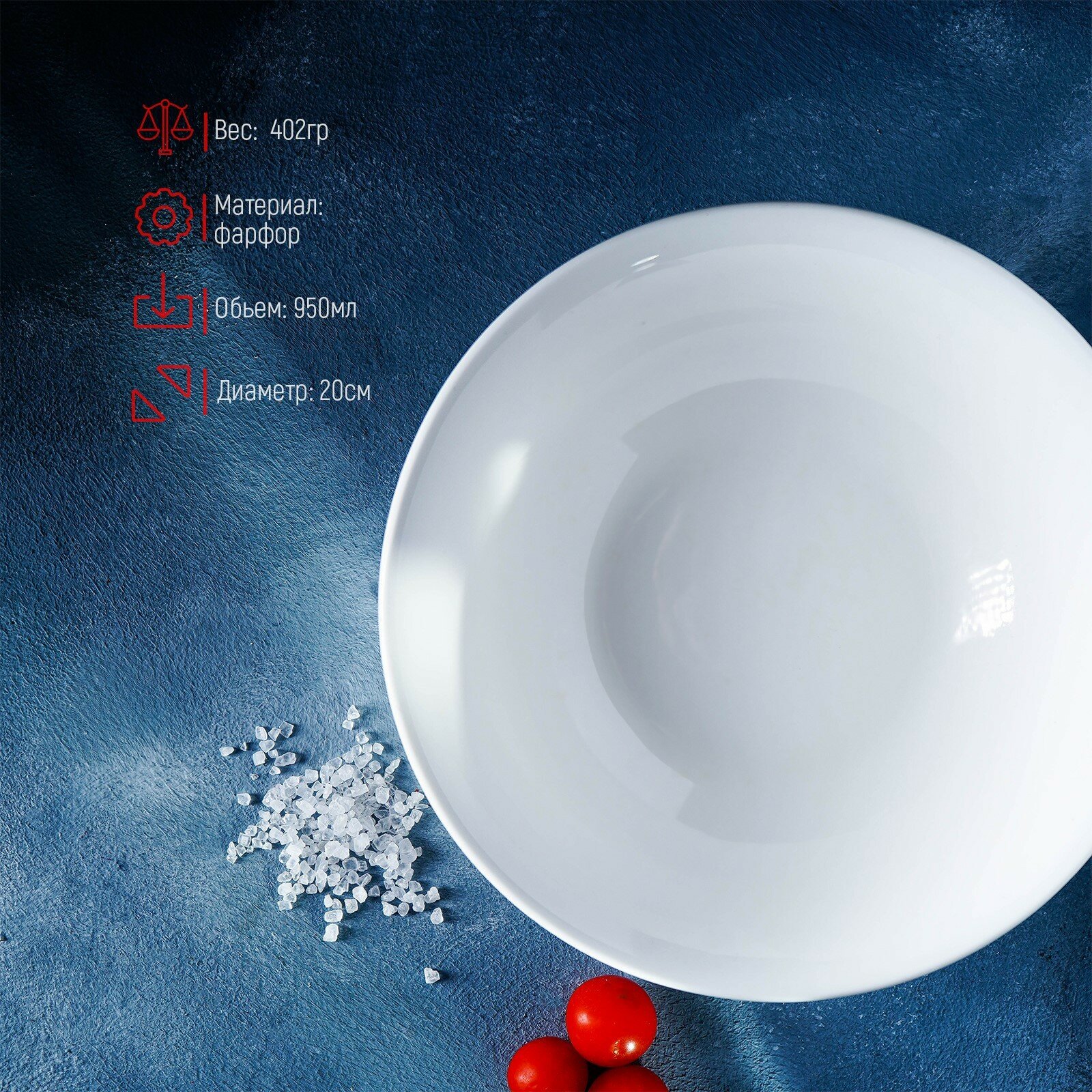 Тарелка суповая фарфоровая, глубокая тарелка обеденная Доляна White Label 950мл, d=20 см