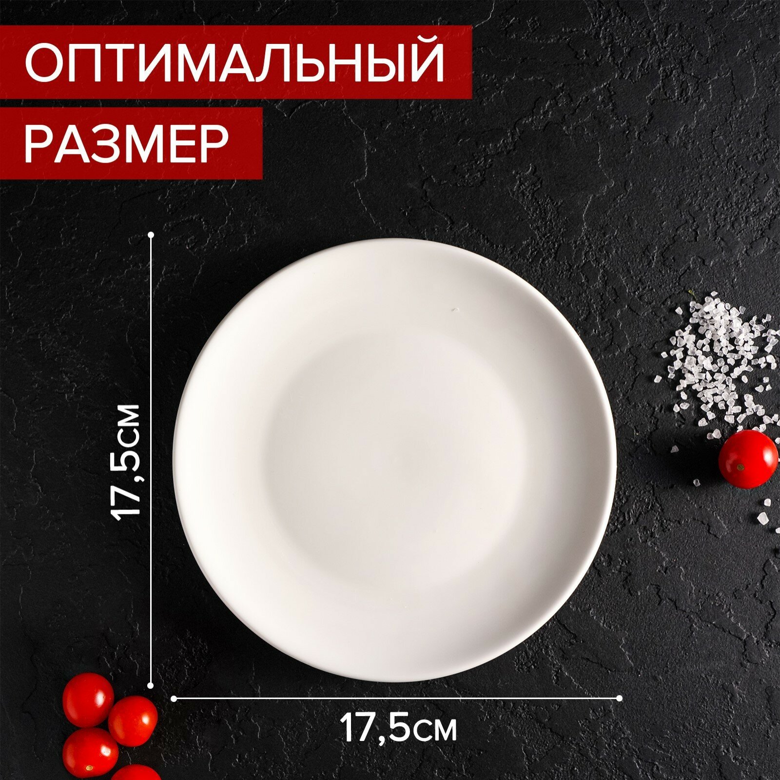 Десертная тарелка Доляна White Label, d=17.5 см, фарфор, белая